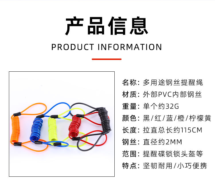 Casco de freno de disco de la motocicleta de bloqueo anti-robo de primavera recordatorio cuerda de alambre de viaje creativo europeo y americano multicolor en stock