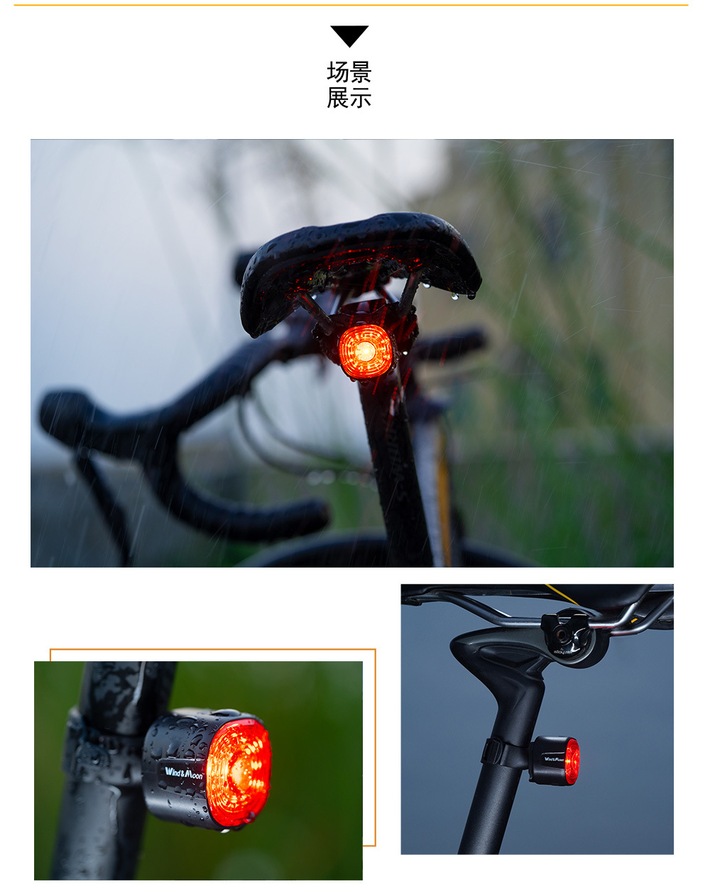Luz trasera inteligente de bicicleta Luz trasera de freno Luz trasera Luz de advertencia de viaje nocturno Luz de montaña Carga tipo-C