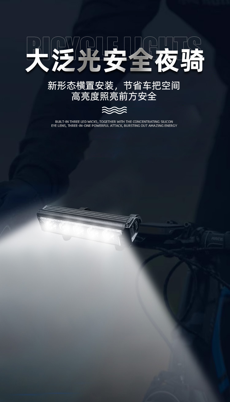 Nueva luz de la bicicleta de aleación de aluminio USB faro de la bicicleta brillante noche montar a caballo linterna al aire libre accesorios transfronterizos
