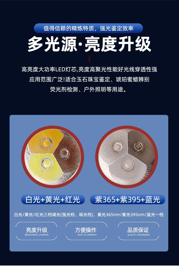 Nuevo S - 85 con cuatro fuentes de luz para iluminar linterna de jade con luz fuerte joyas de piedra esmeralda ámbar cera de miel luz púrpura
