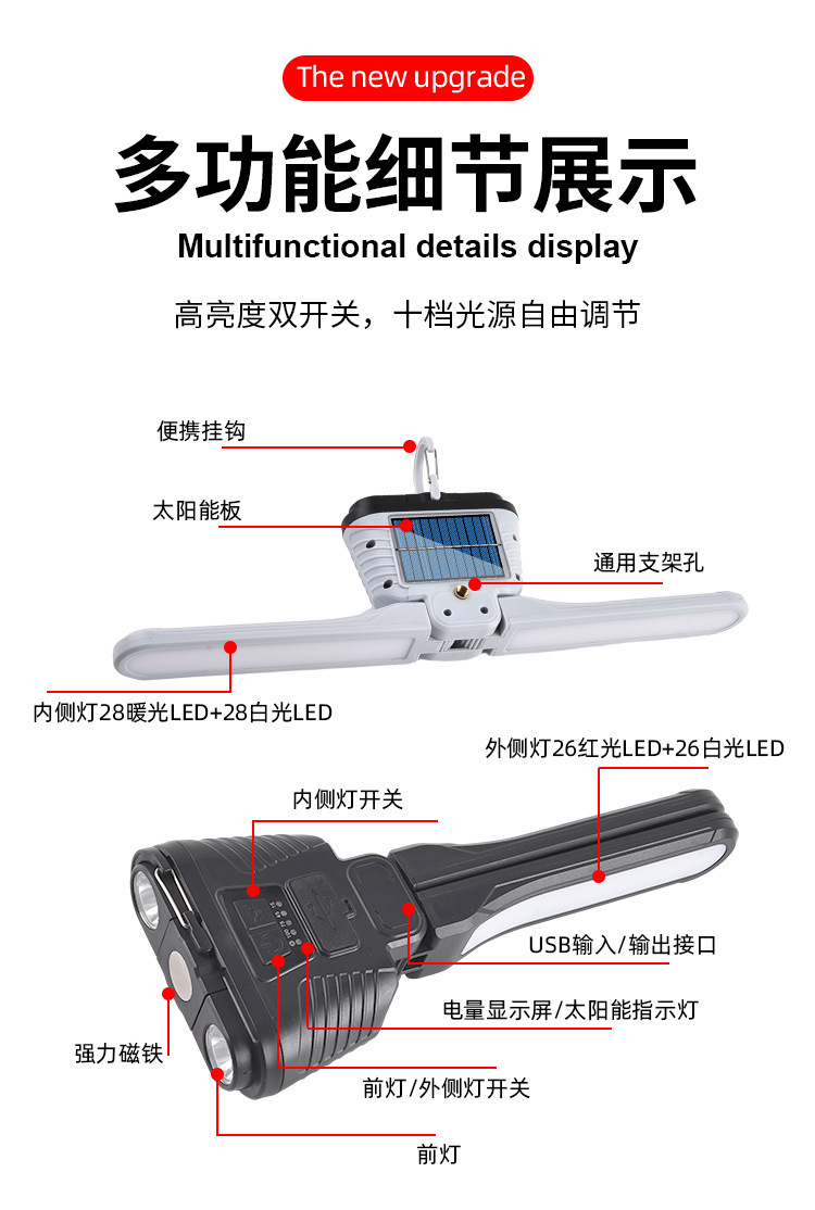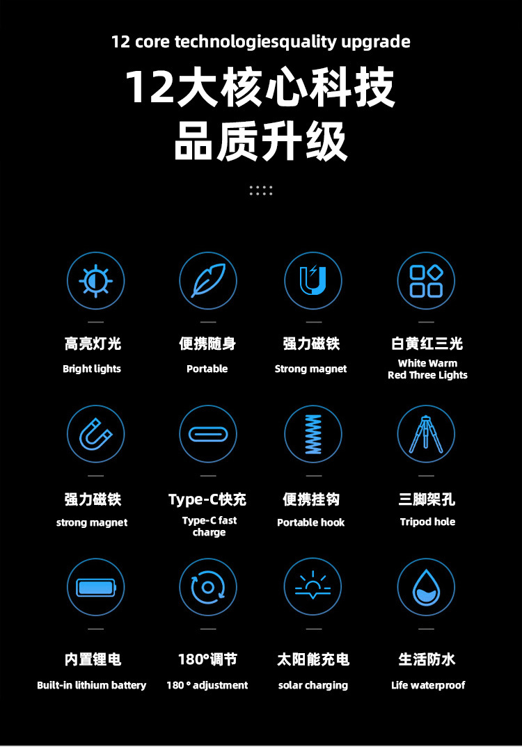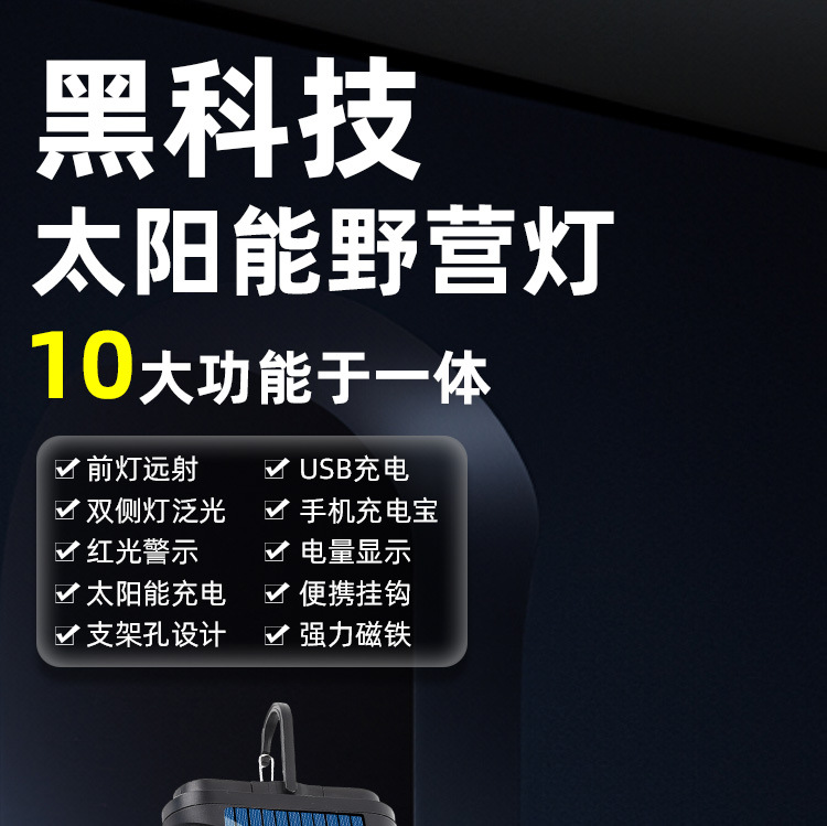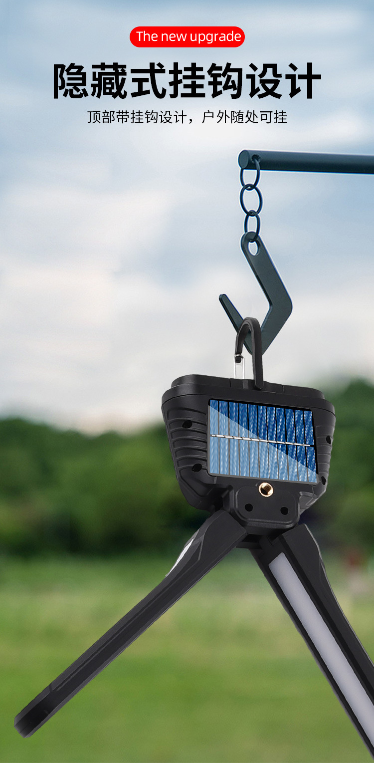 Luz solar multifuncional para acampar, batería magnética de funcionamiento, linterna impermeable exterior de larga duración