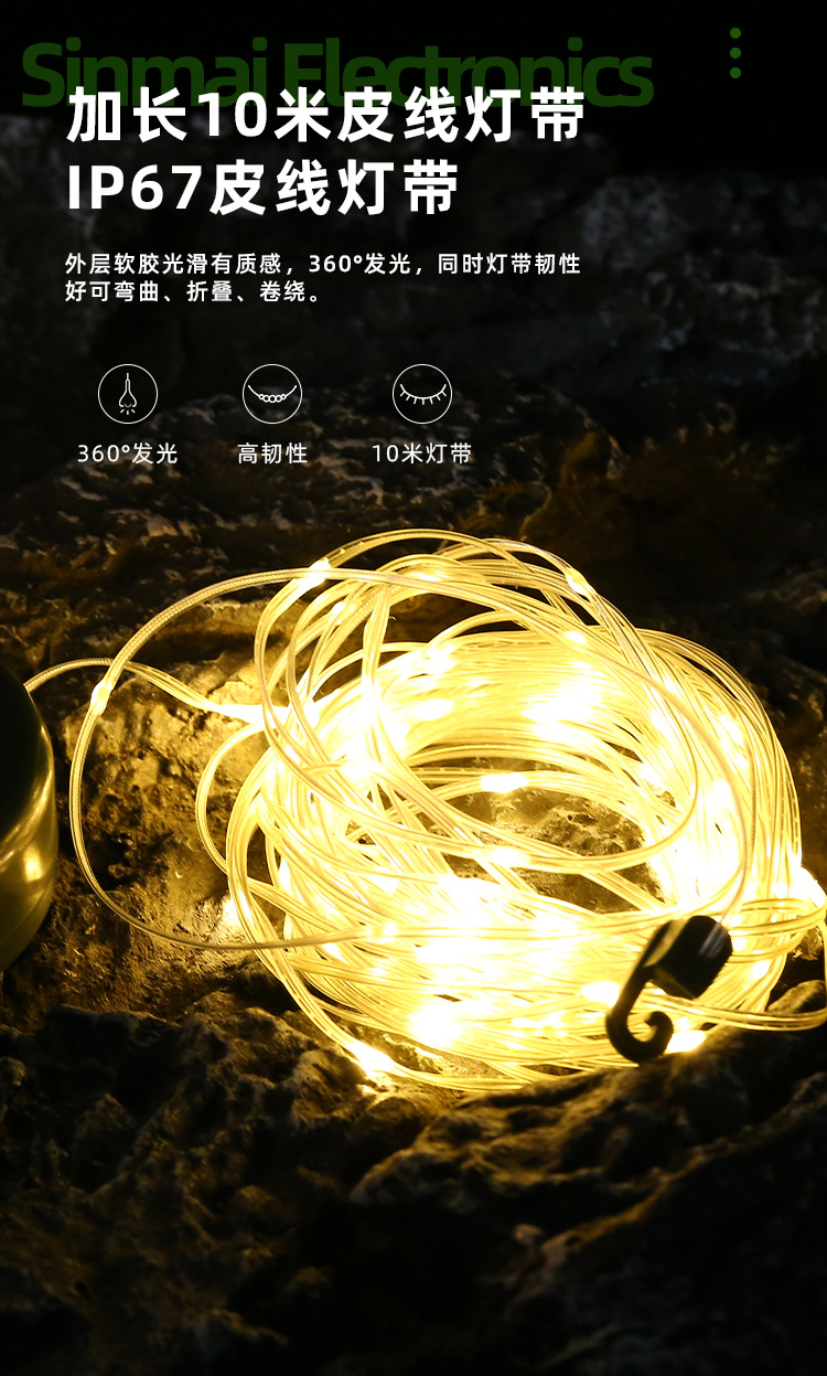 Explosión transfronteriza LED cinta lámpara de camping multifuncional camping light skylight colorido luz de atmósfera al aire libre lámpara de cadena impermeable