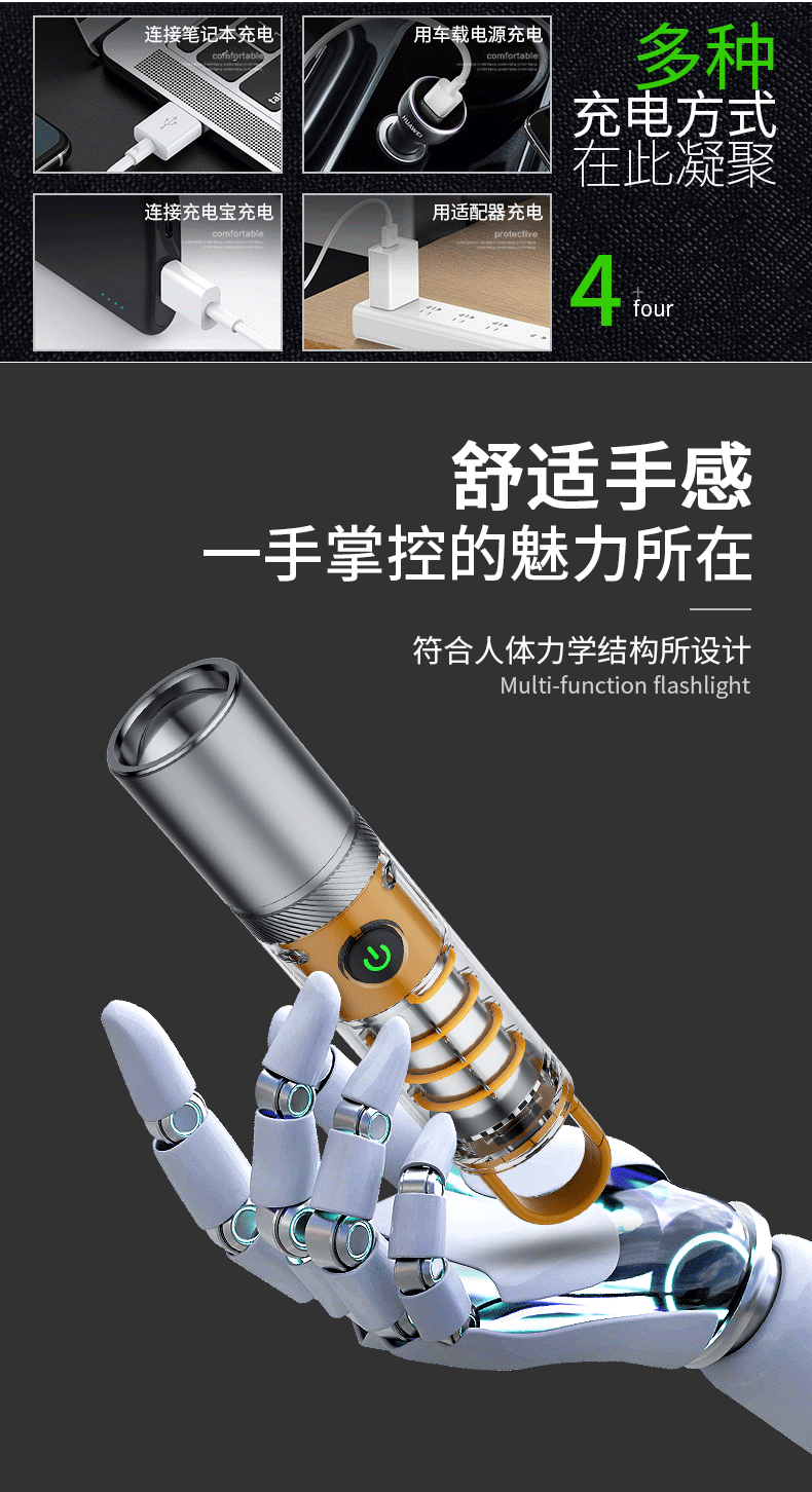 Mini linterna pequeña luz fuerte LED al aire libre recargable portátil Super brillante luz láser blanco multifuncional COB luz de trabajo