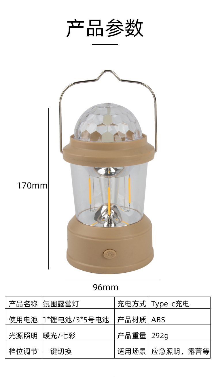 | Color | Lámpara de campamento de ventilador (incluida la batería recargable), lámpara de campamento de colores (incluida la batería recargable) |
