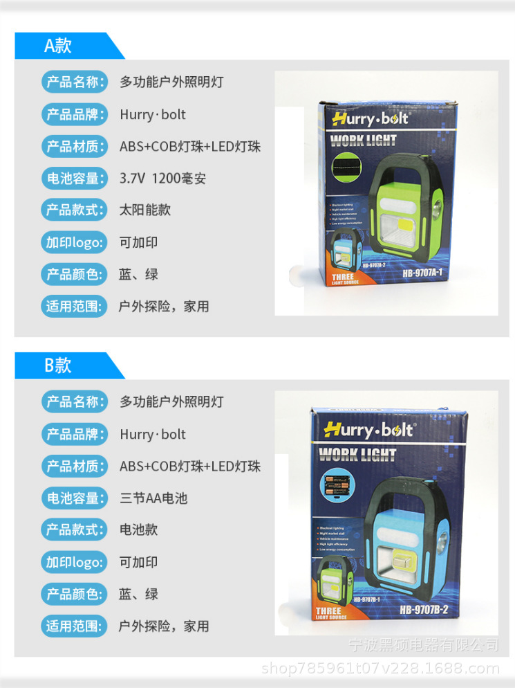 Luz portátil de emergencia multifuncional transfronteriza luz de campamento al aire libre solar USB carga luz de trabajo luz de carpa