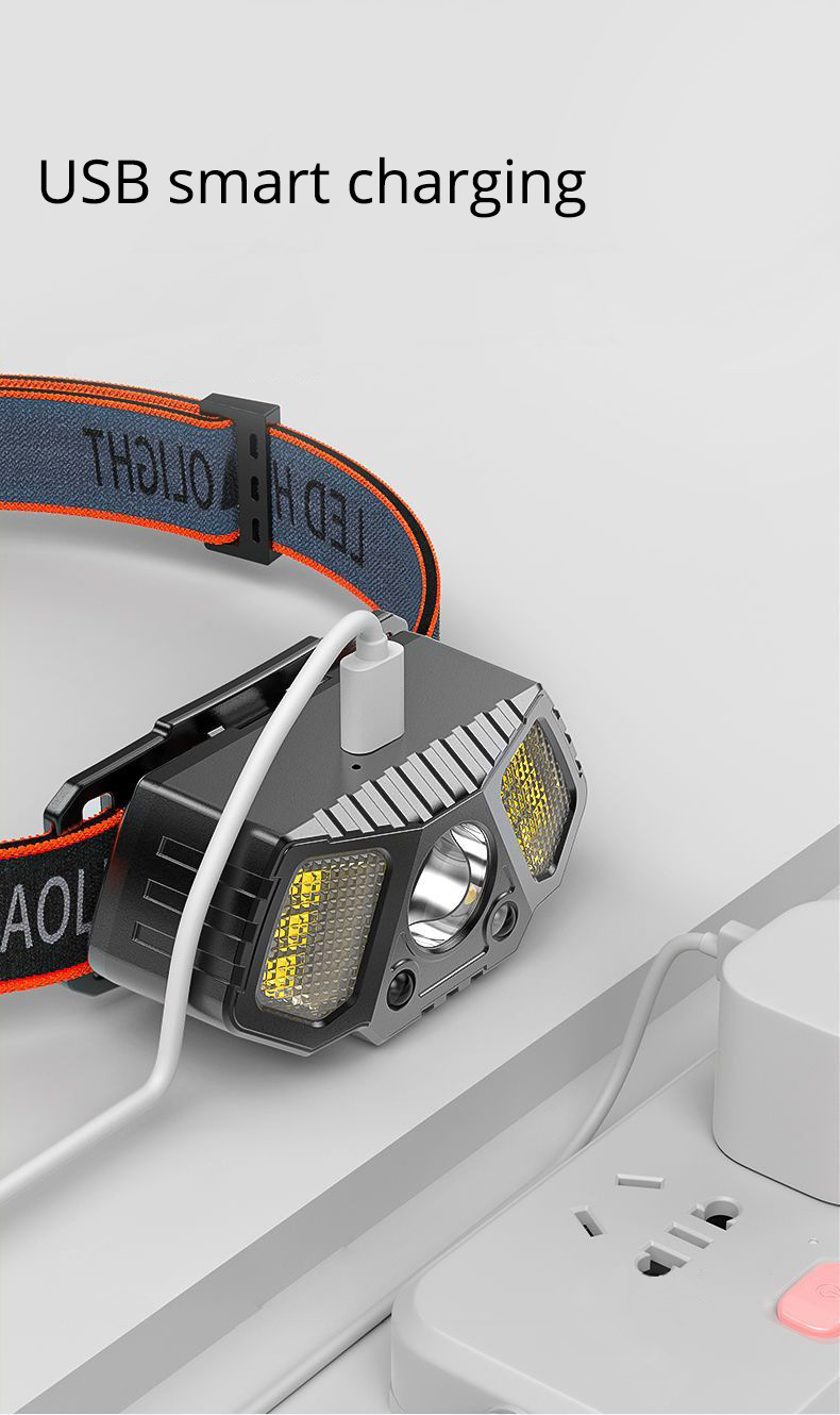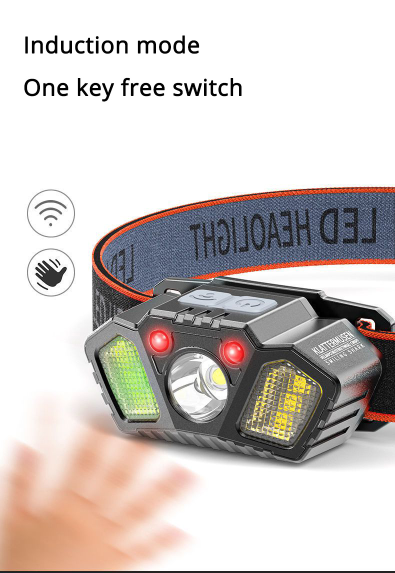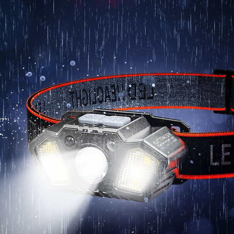Transfronteriza fuerte faro de luz al aire libre LED linterna montada en la cabeza luz roja recargable mini Faro de inducción de pesca al por mayor