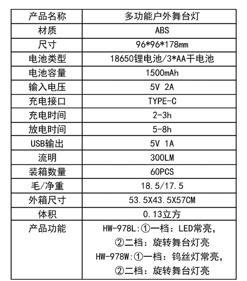 Luz de camping portátil al aire libre Luz de escenario súper brillante linterna giratoria LED multifuncional luz de la tienda de emergencia Luz de camping