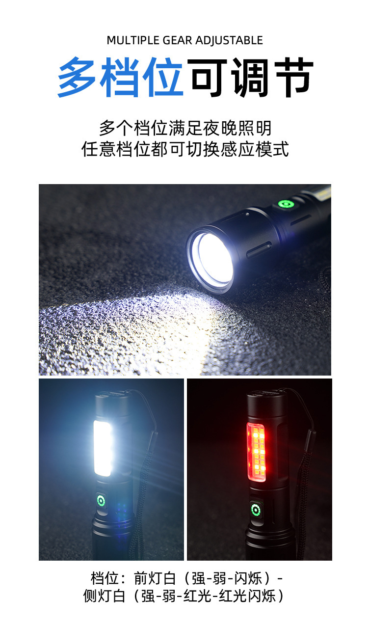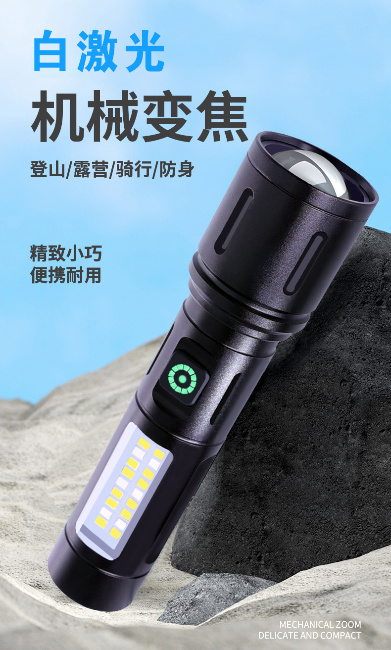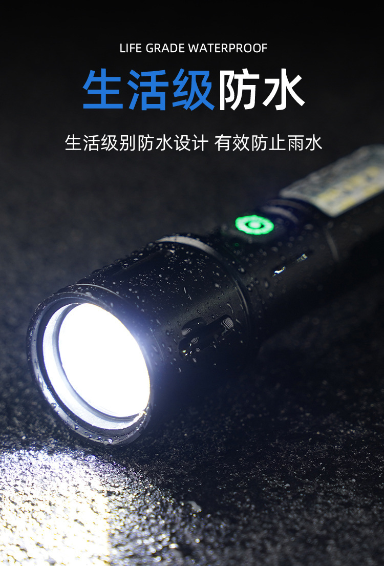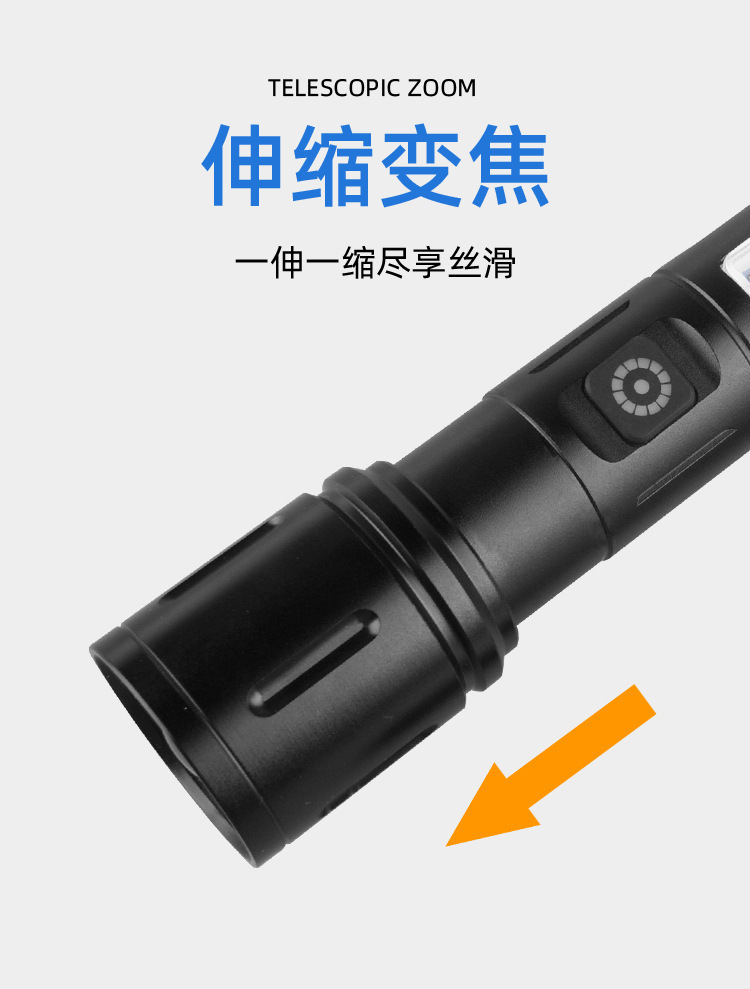 Linterna de Mano Transfronteriza, Nuevo Modelo, Luz Potente, Portátil, Mini, Multifuncional, de Aleación de Aluminio, con Zoom Telescópico, Recargable