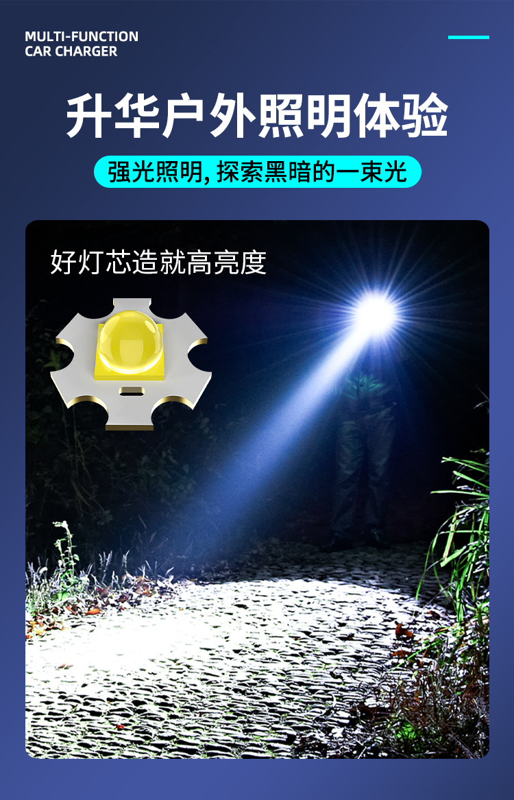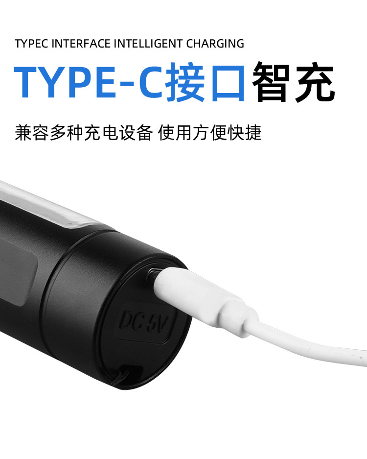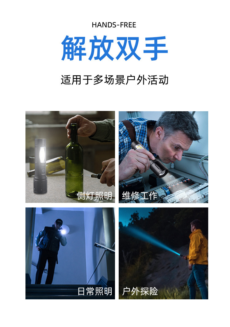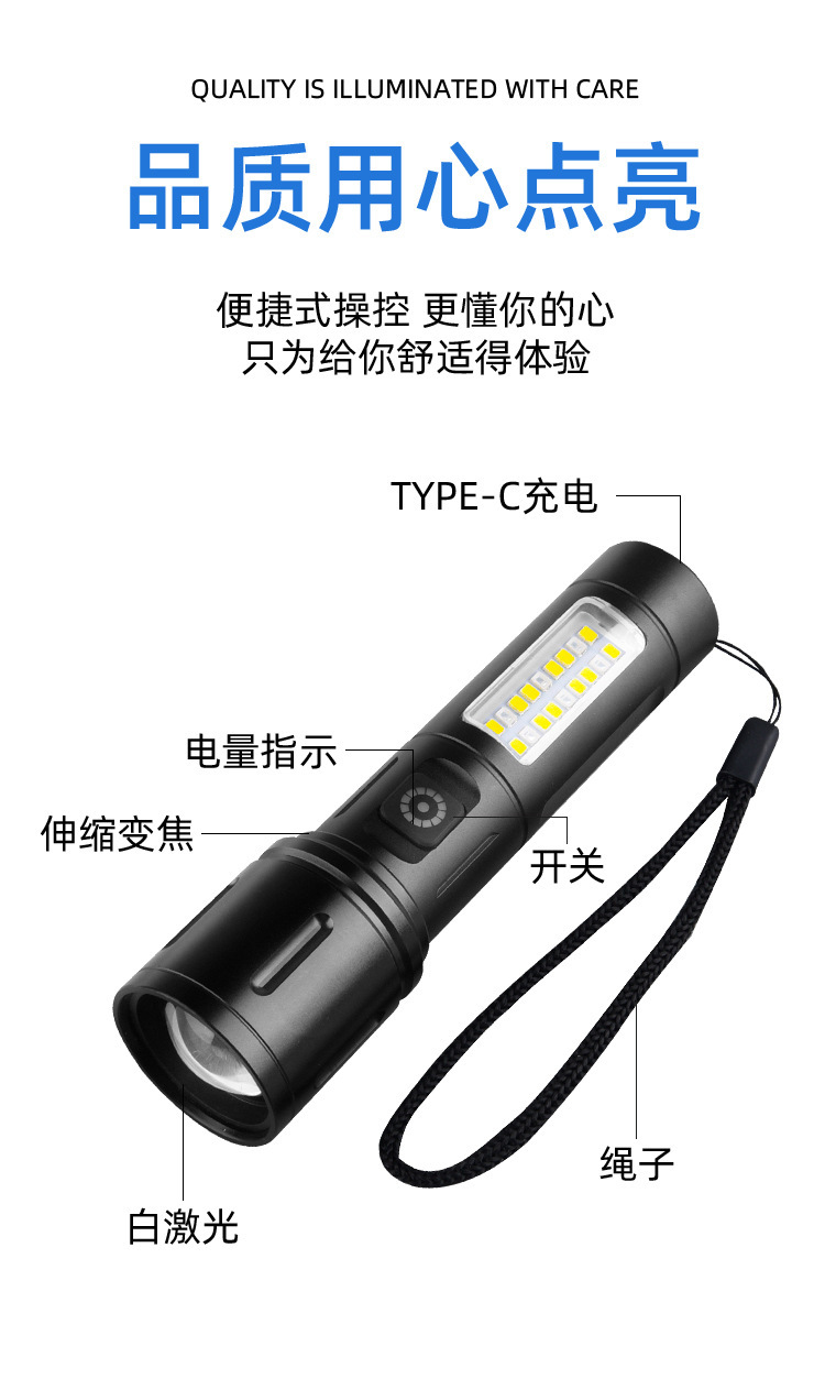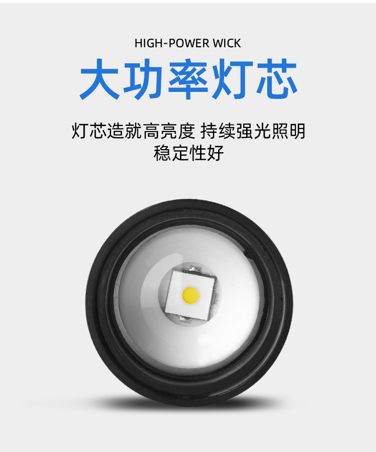 Linterna de Mano Transfronteriza, Nuevo Modelo, Luz Potente, Portátil, Mini, Multifuncional, de Aleación de Aluminio, con Zoom Telescópico, Recargable
