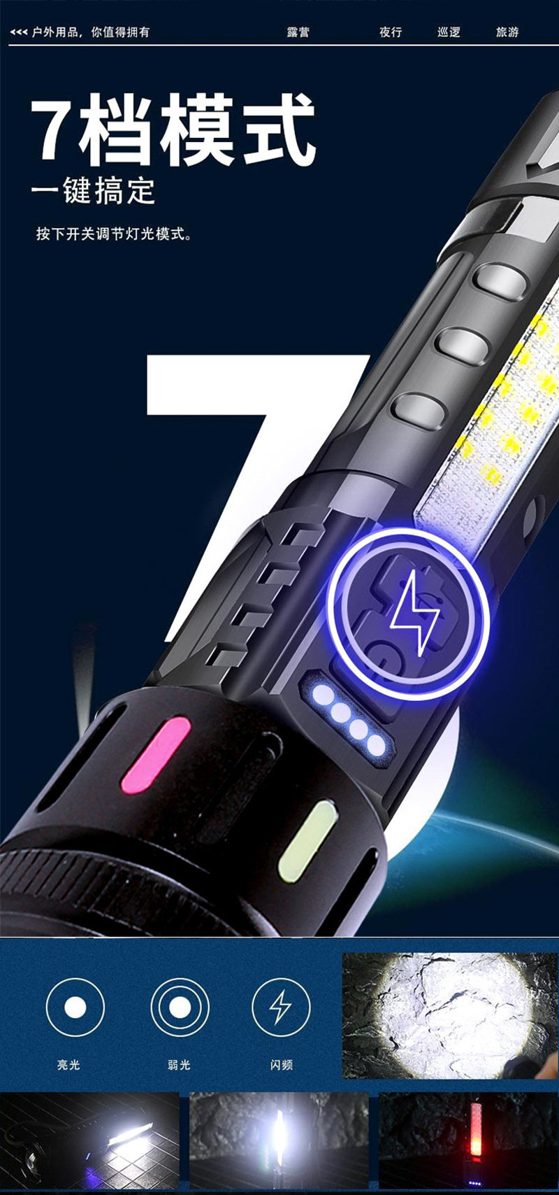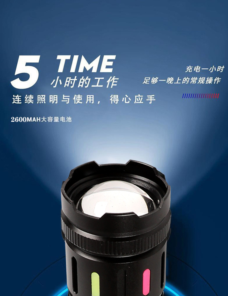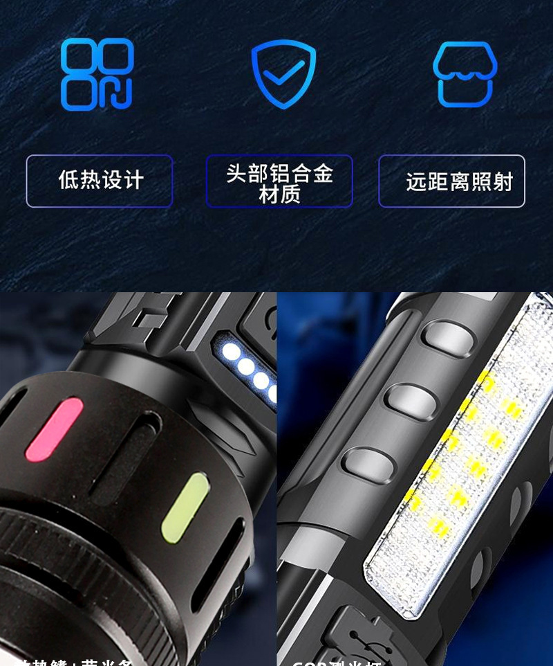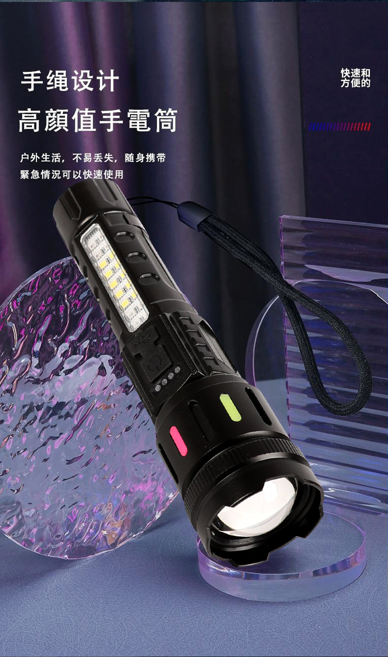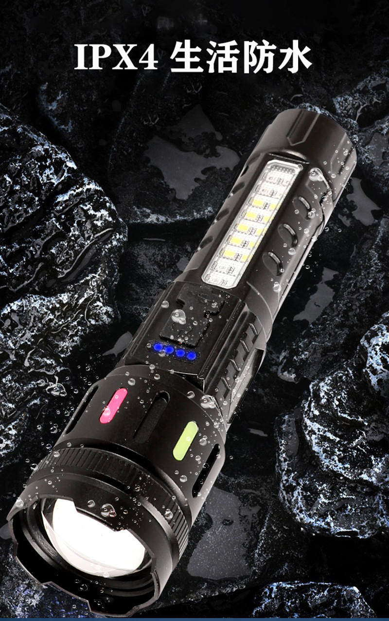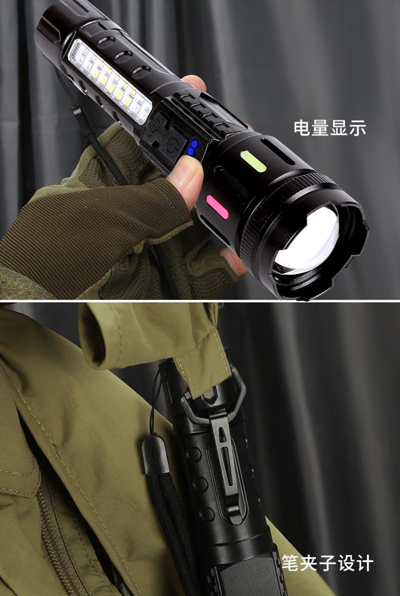 Cross-actualizado al aire libre noche pescando linterna láser blanca luz intensa larga duración de la lámpara lateral cob advertencia linterna de zoom fluorescente