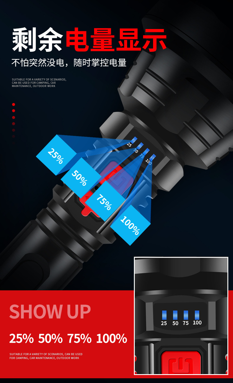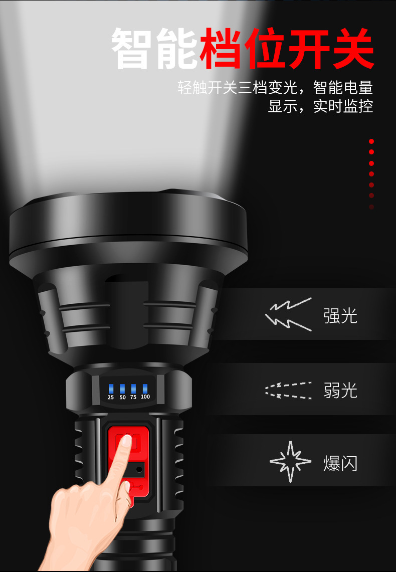 Antorcha de luz intensa transfronteriza con pantalla eléctrica de tiro remoto ultra brillante para acampar fuera del hogar, antorcha de tiro remoto de pesca