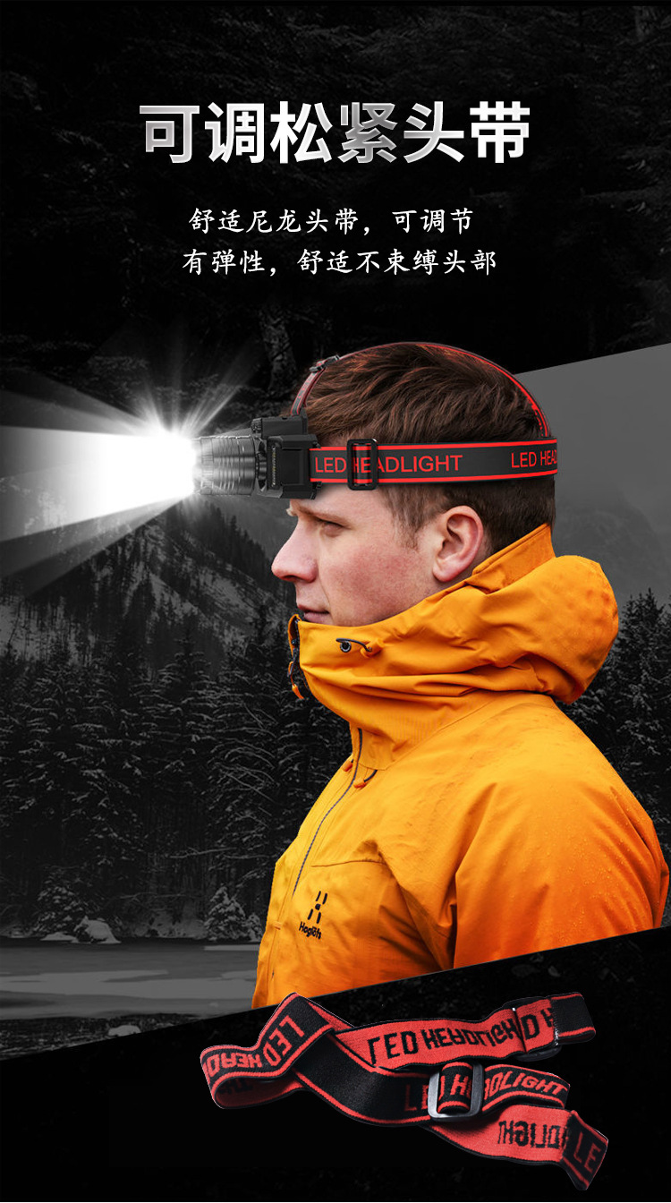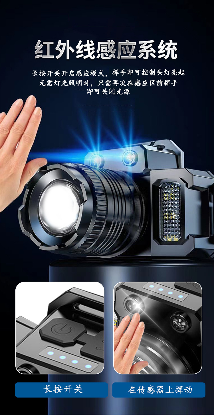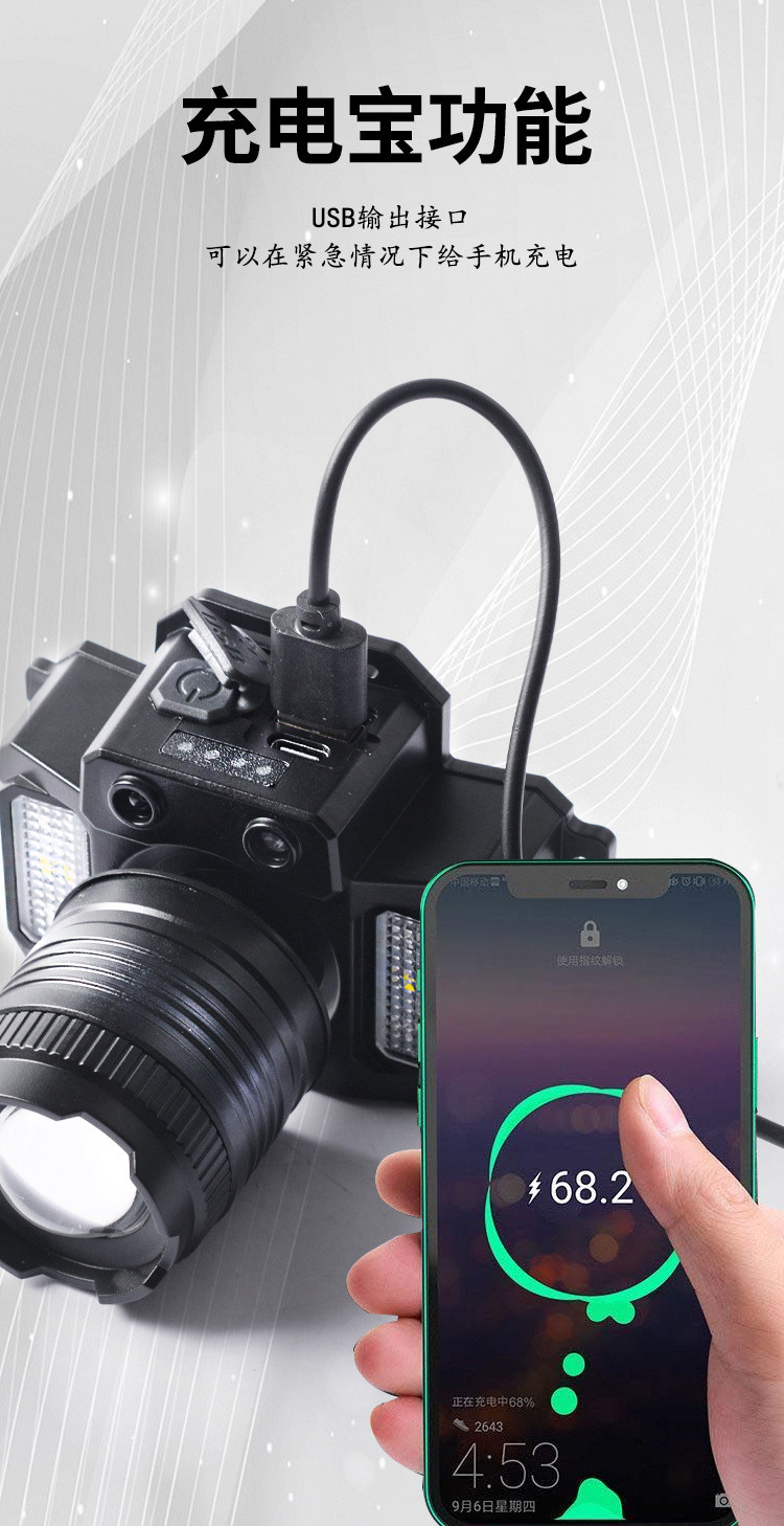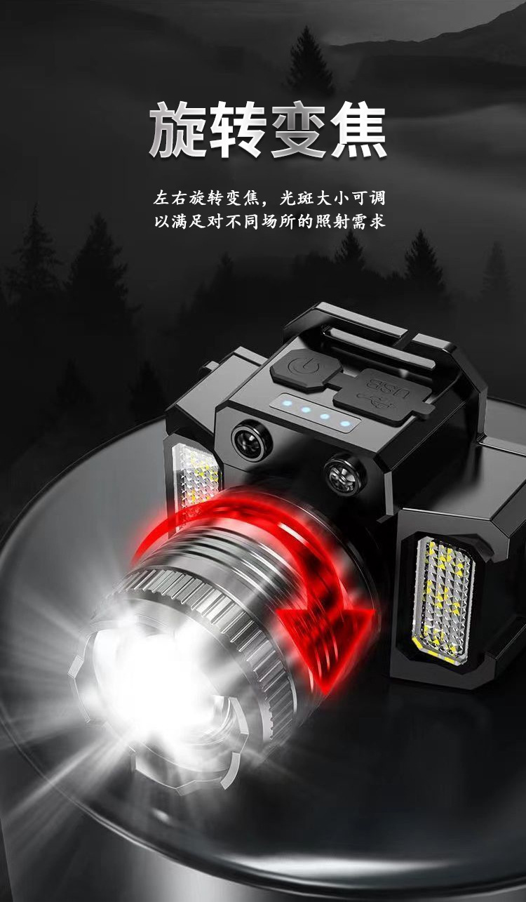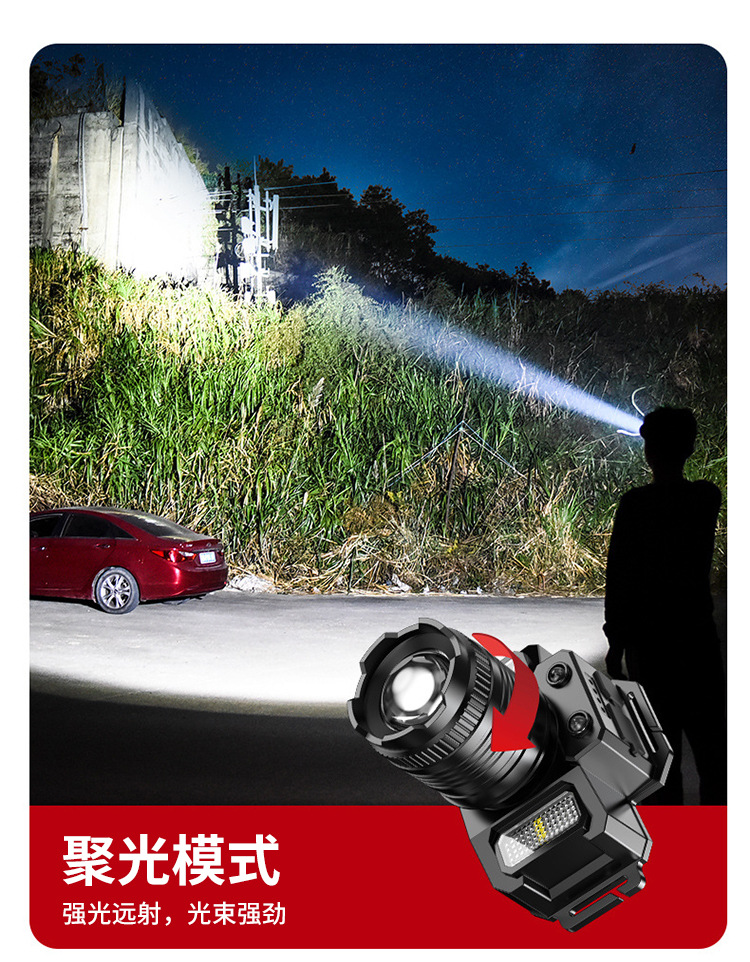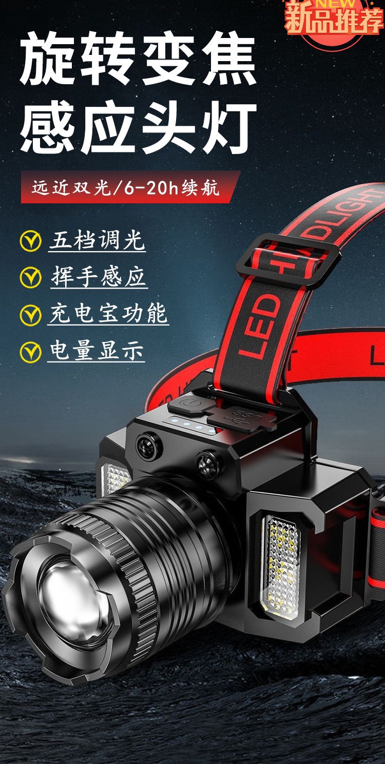 Nueva luz fuerte faro con inducción al aire libre portátil noche pesca lámpara pesca faro zoom remoto LED recargable faro