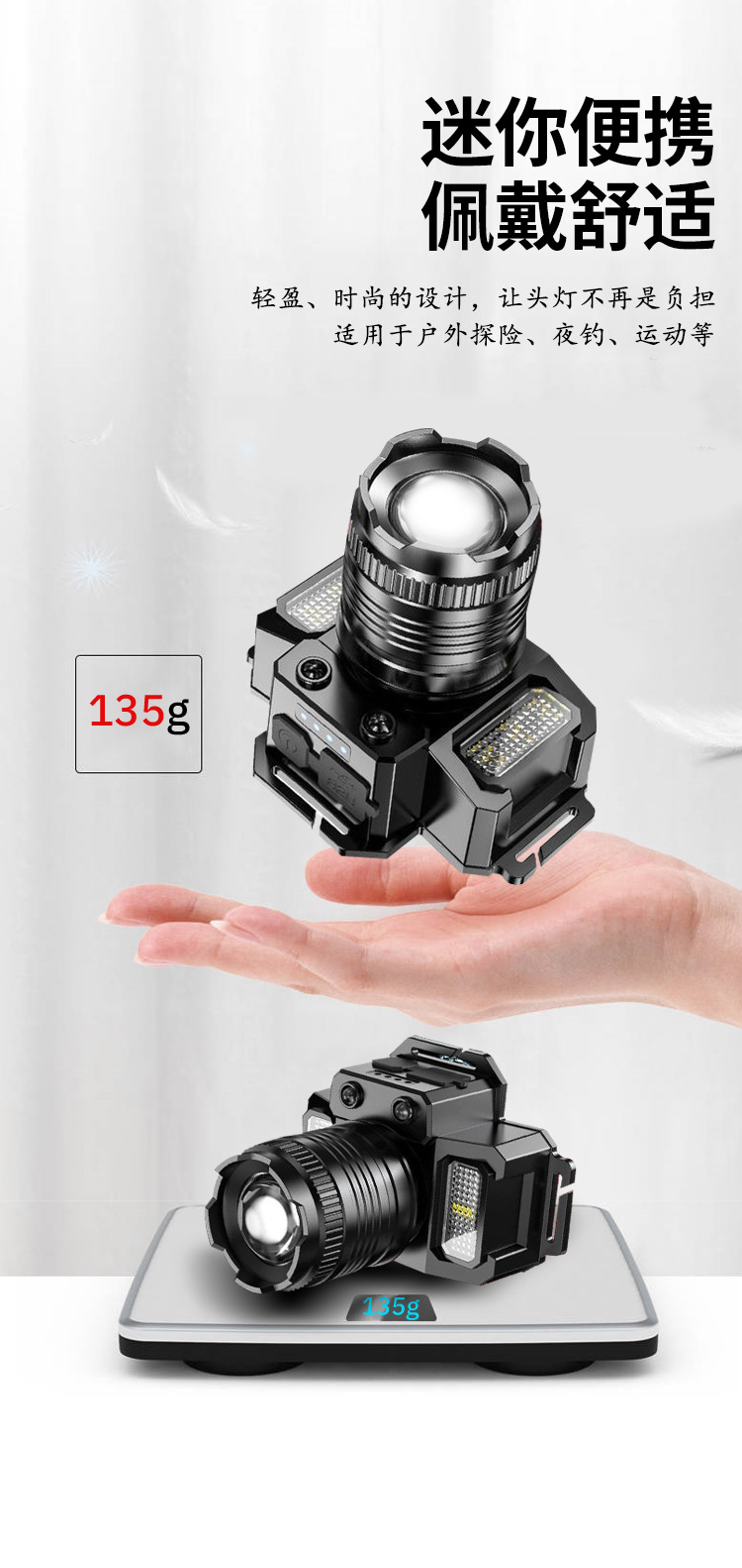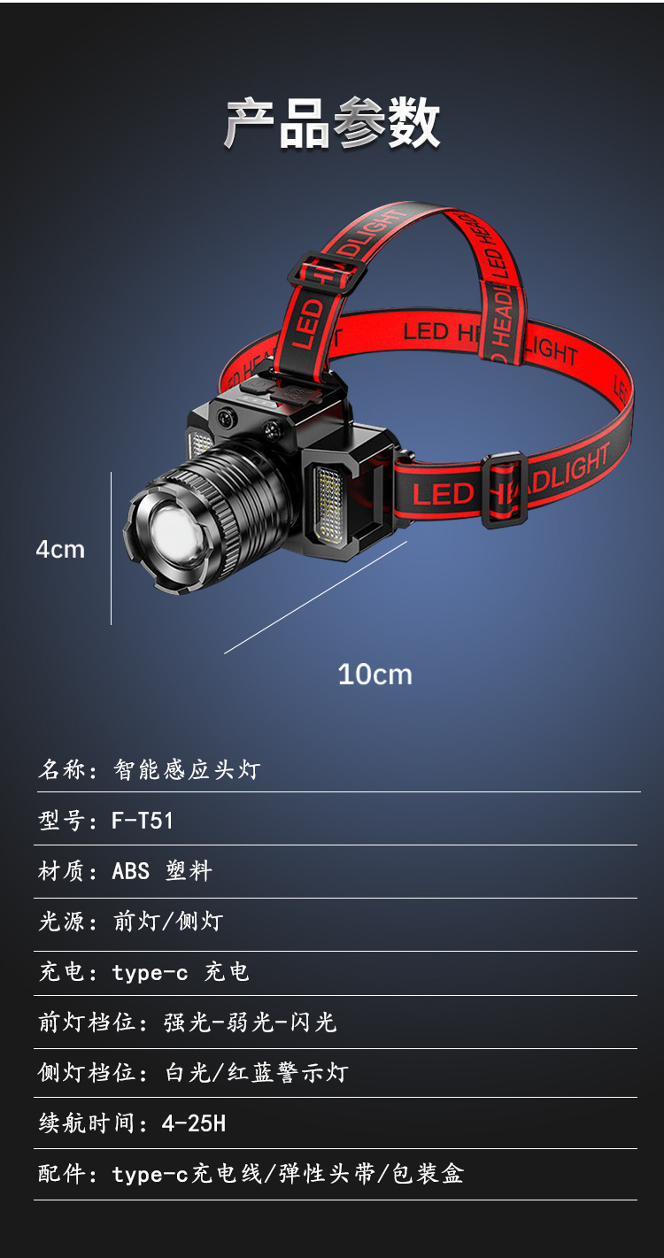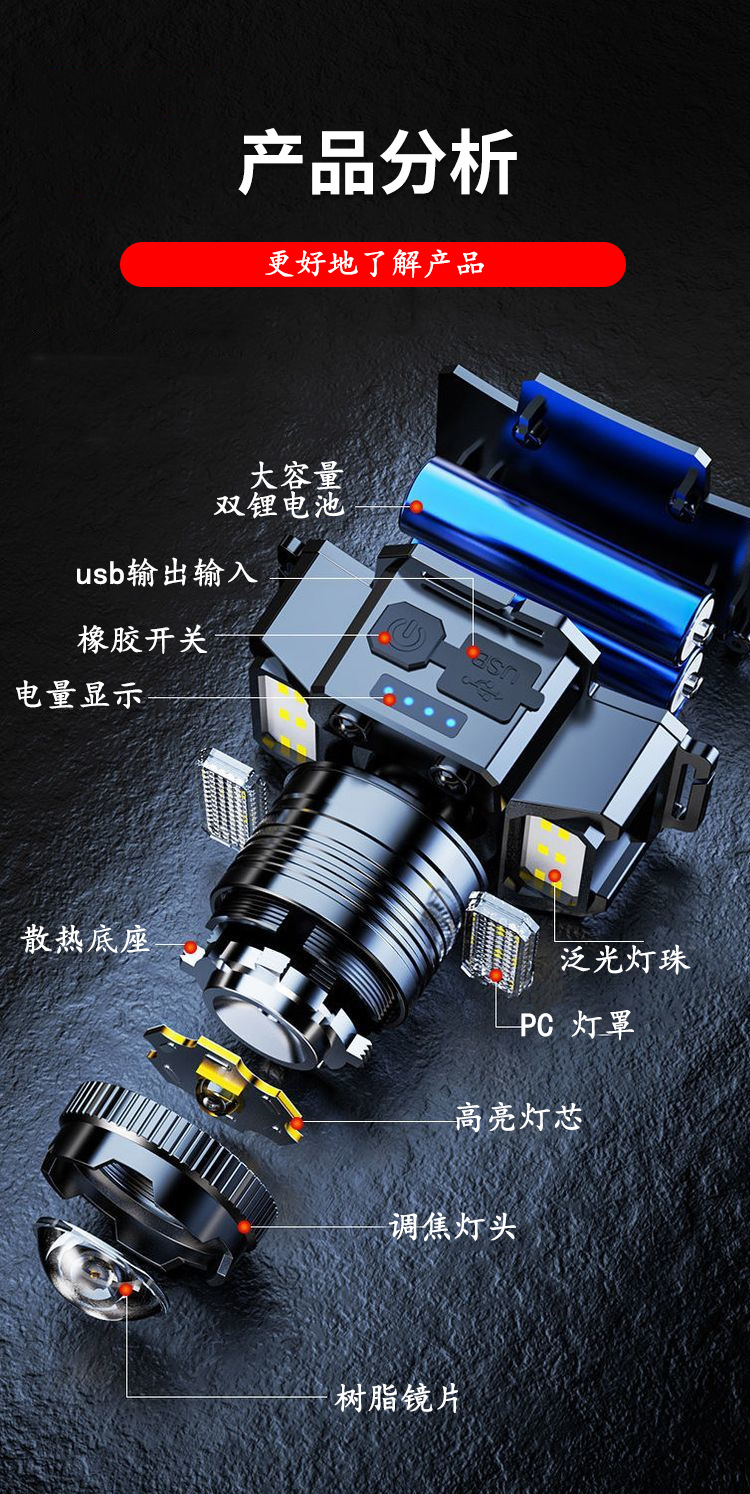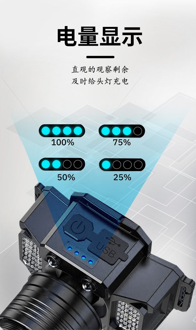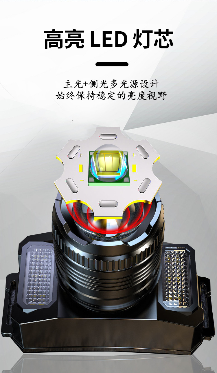 Nueva luz fuerte faro con inducción al aire libre portátil noche pesca lámpara pesca faro zoom remoto LED recargable faro
