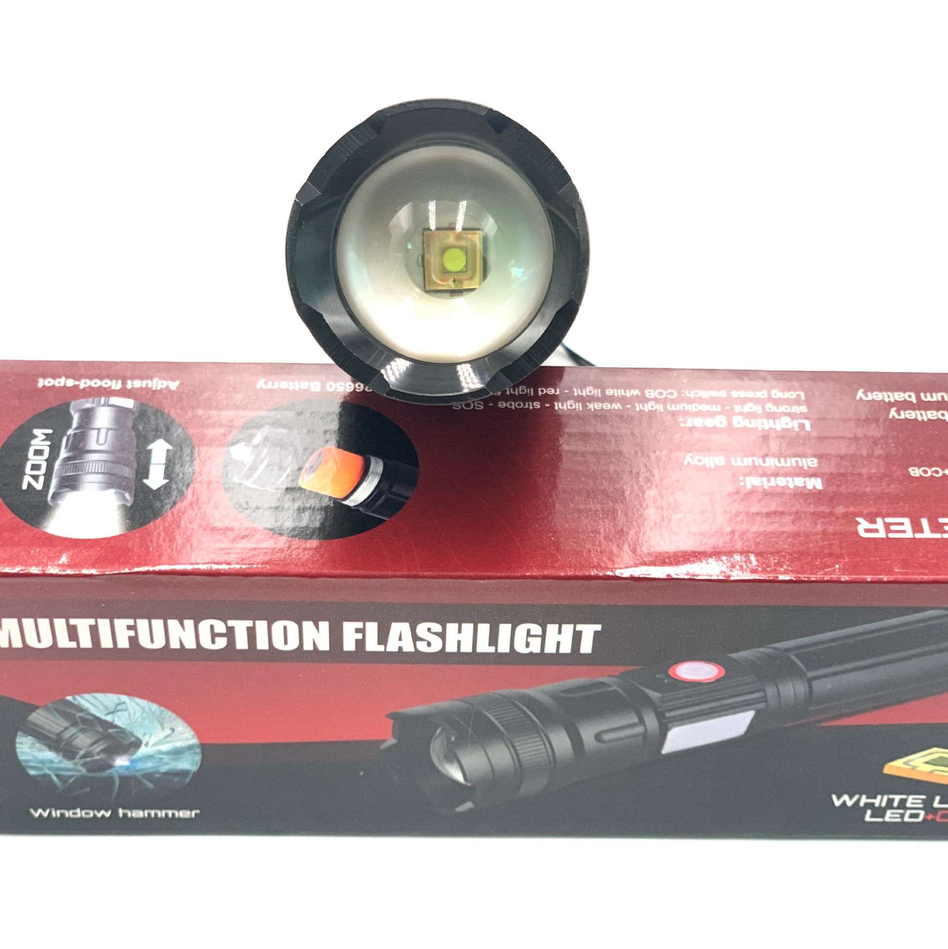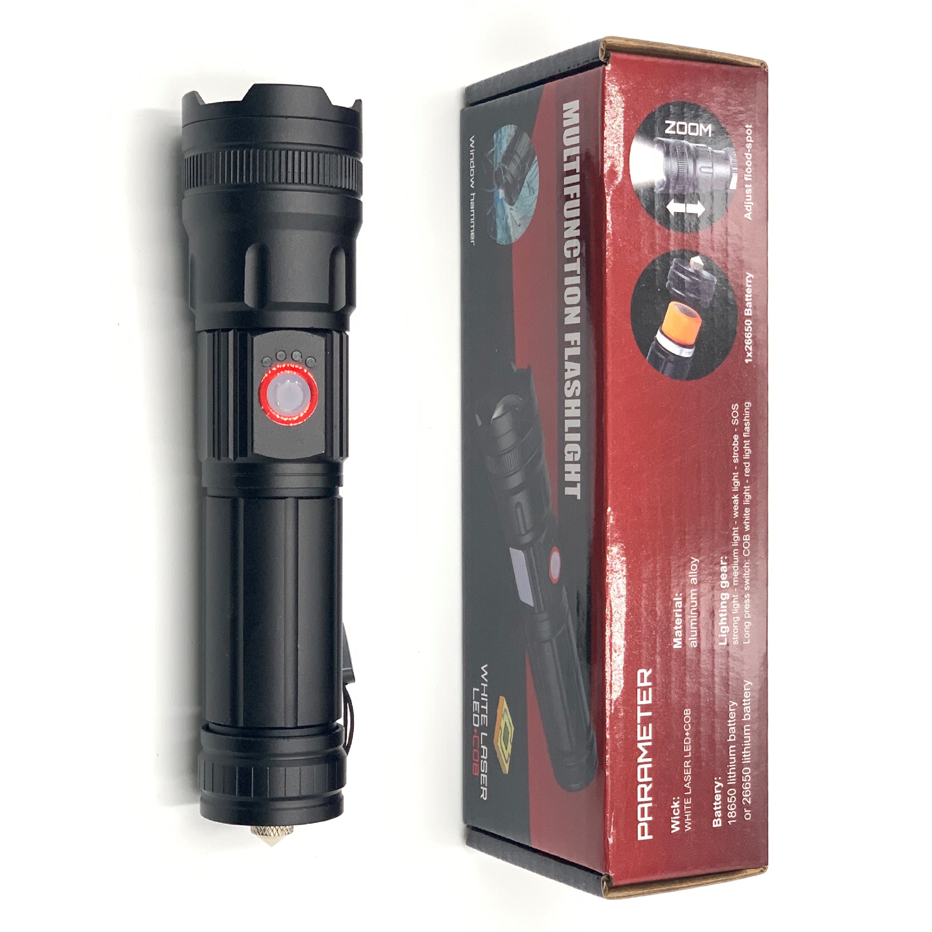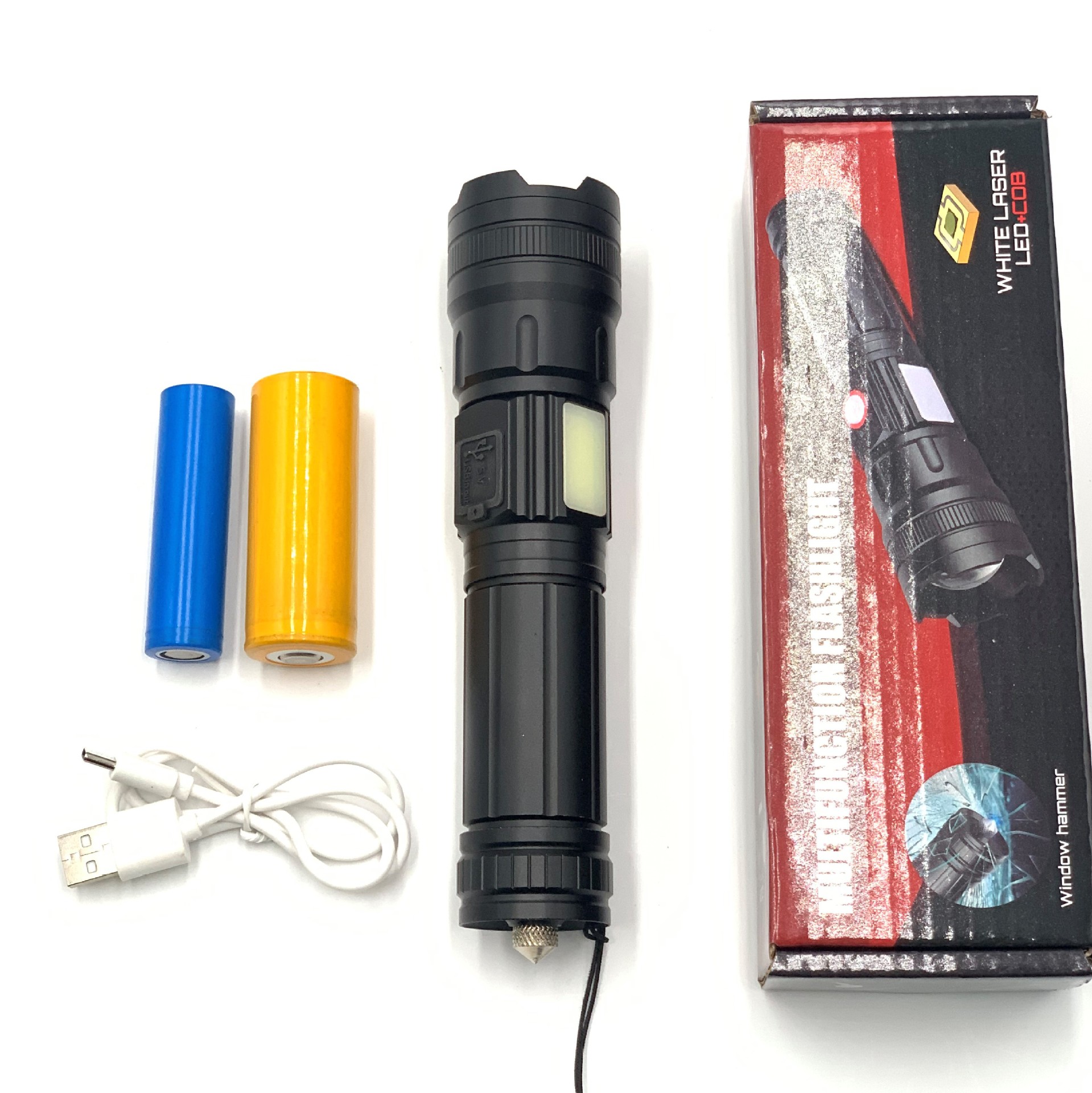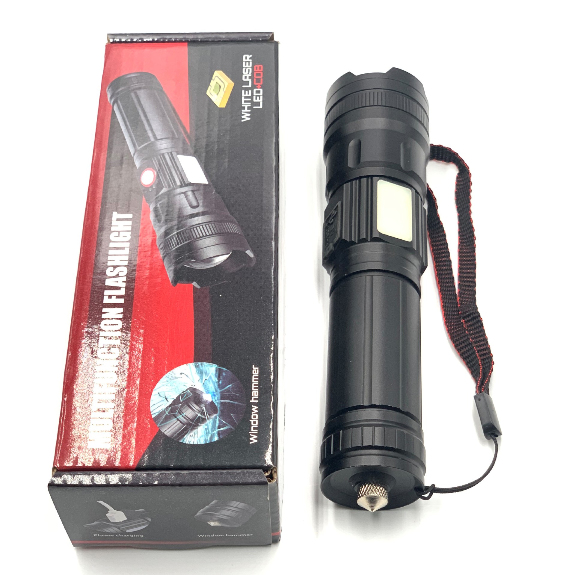 Linterna láser blanco multifunción coche roto ventana martillo hogar iluminación de emergencia linterna al aire libre luz fuerte linterna recargable