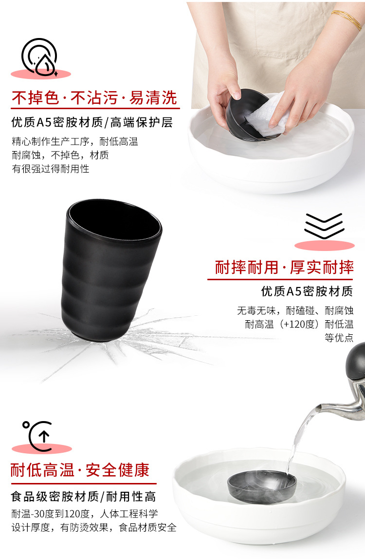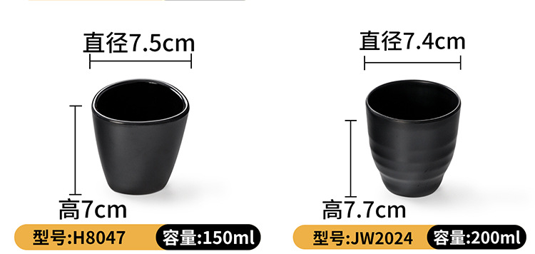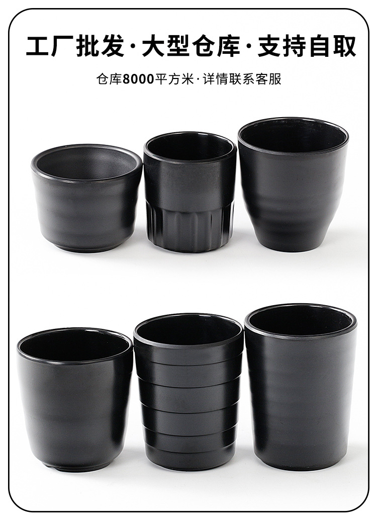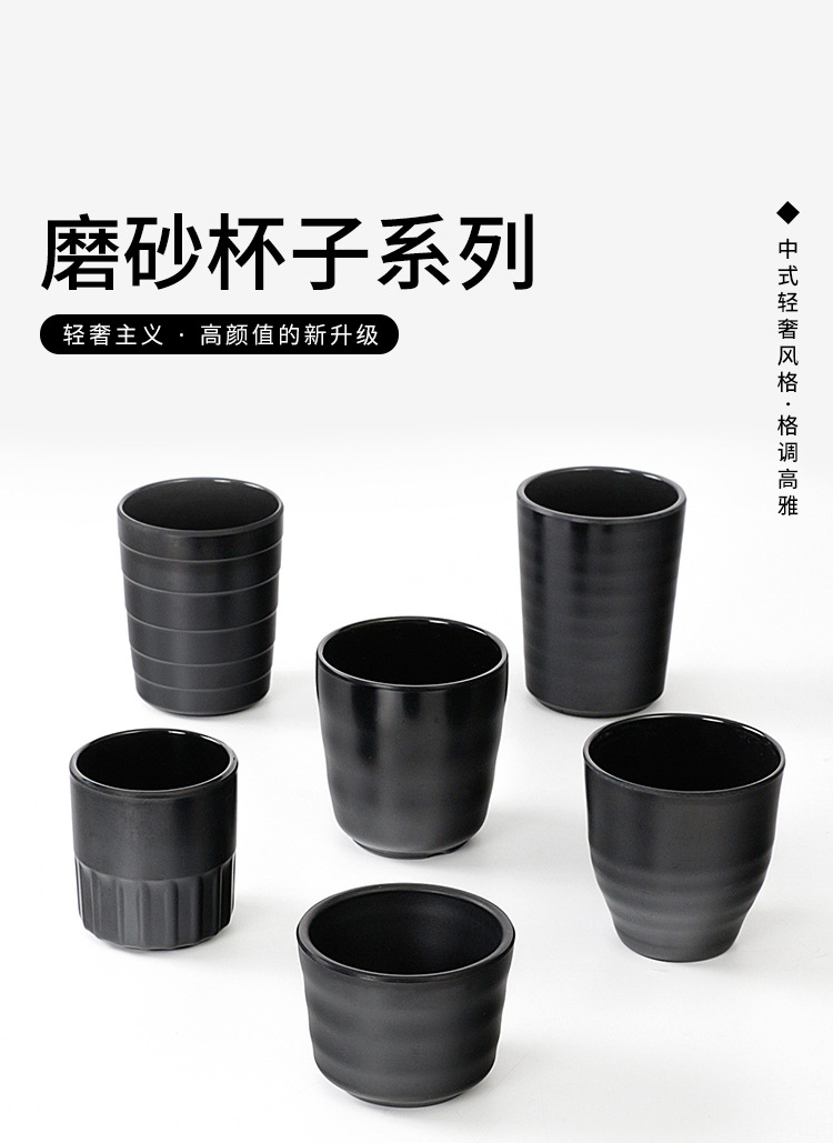 Gruesa gota-resistente negro japonés taza de agua esmerilada taza de té restaurante Hotel caliente olla melamina imitación porcelana plástico comercial