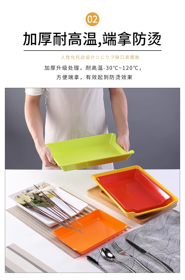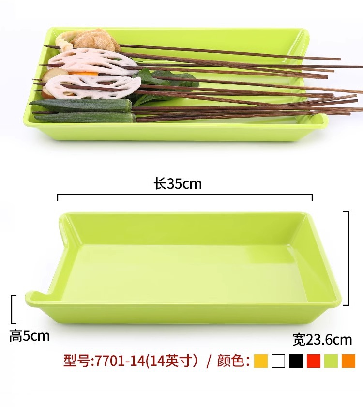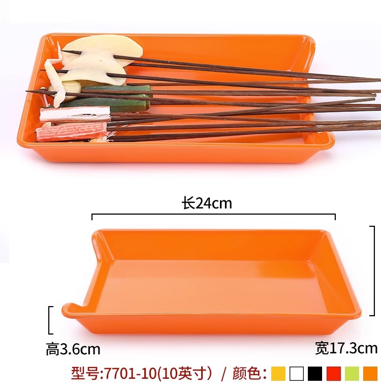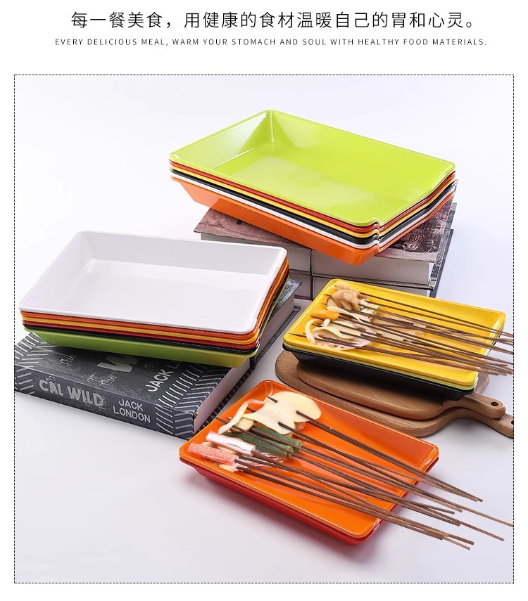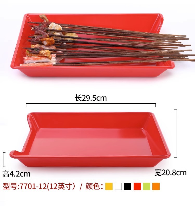 Bandeja de exhibición comercial para brochetas, gruesa y duradera, bandeja de selección de verduras de autoservicio, brochetas fritas, bandeja para servir barbacoa, plástico de melamina