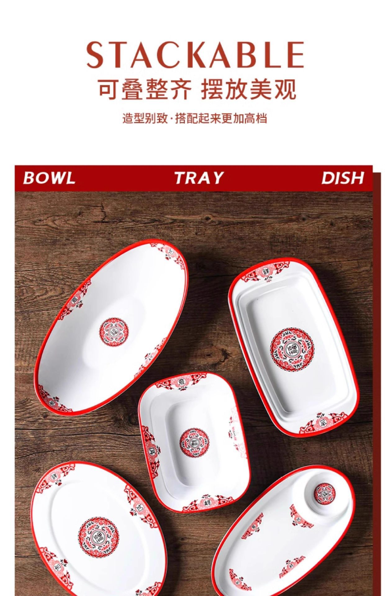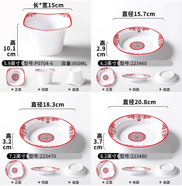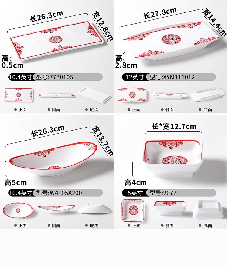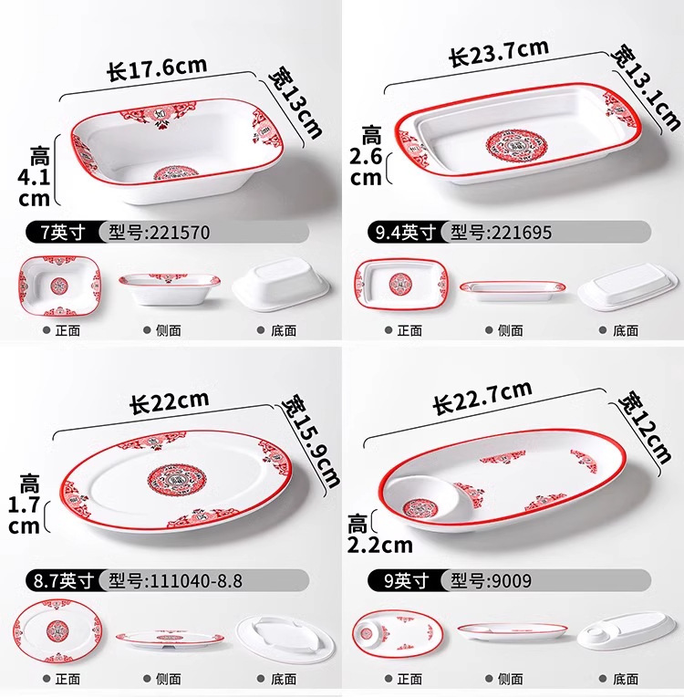 Platos de melamina de carne asada red roja de carne plana tienda de olla caliente comercial de carne de res Chaoshan especial plato rectangular superposición