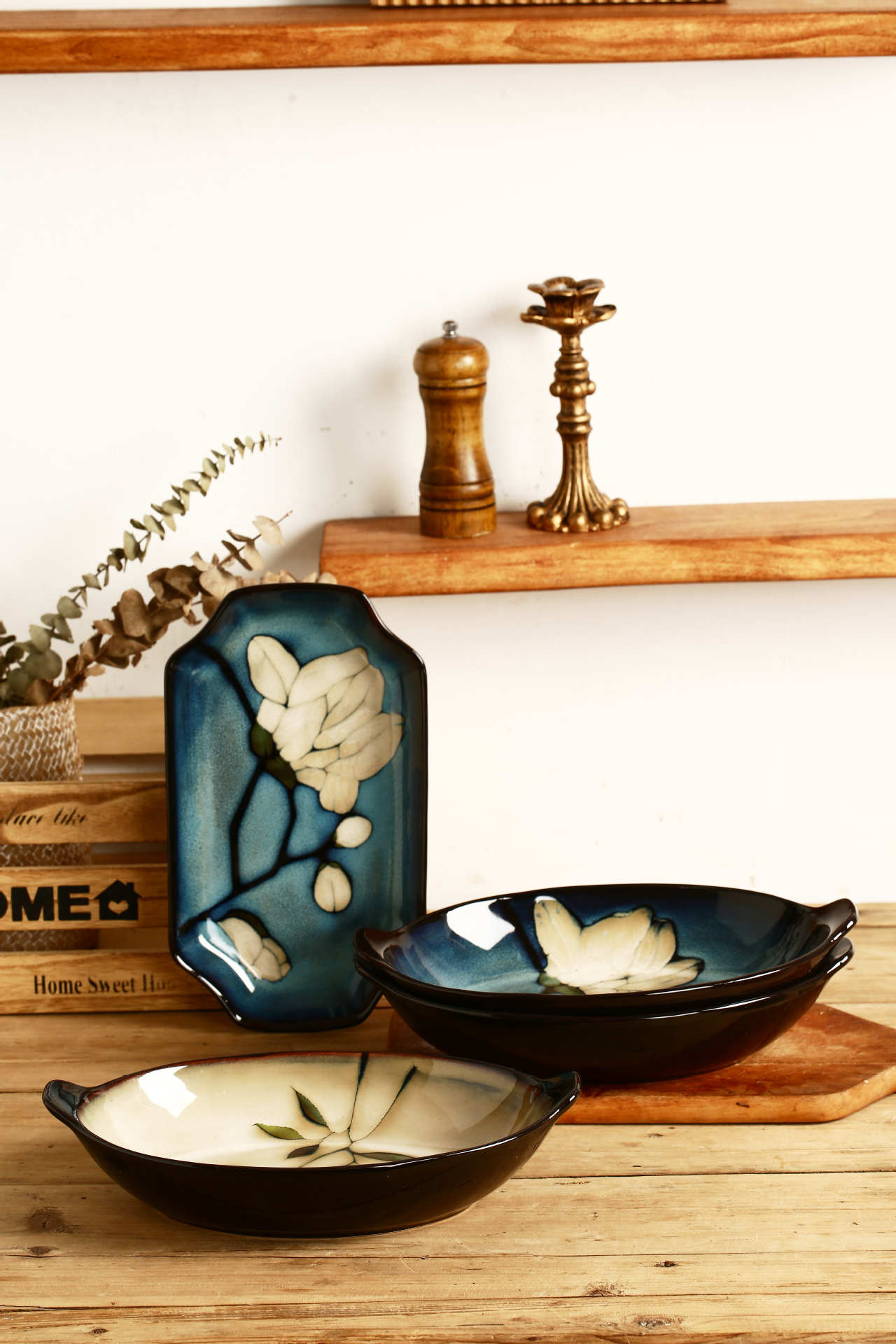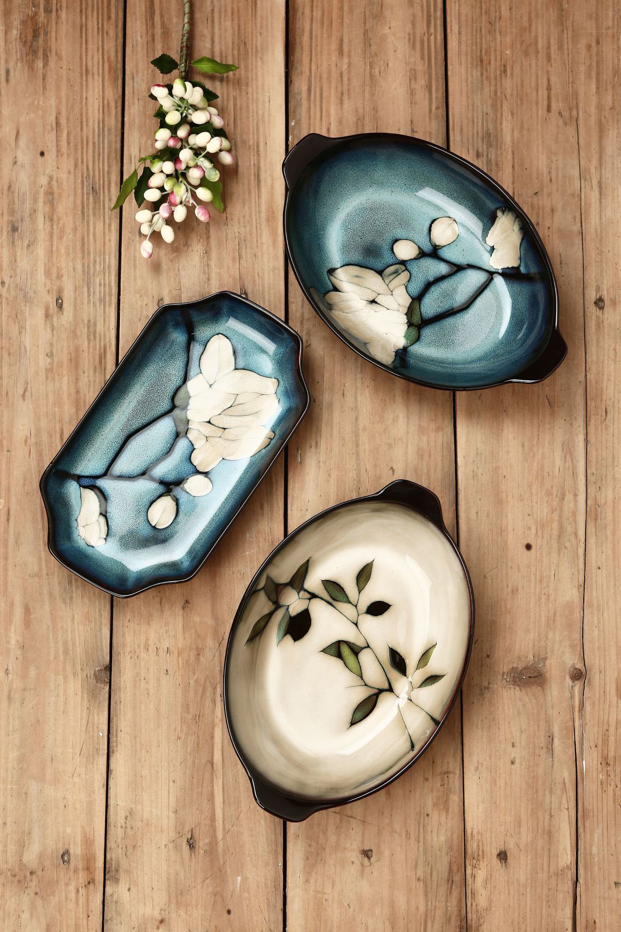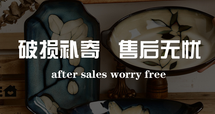 Flor pintada a mano de cerámica plato de pescado grande horno cambio creativo Placa de doble oreja hogar plato profundo bajo vidriado color a juego plato de sushi grande