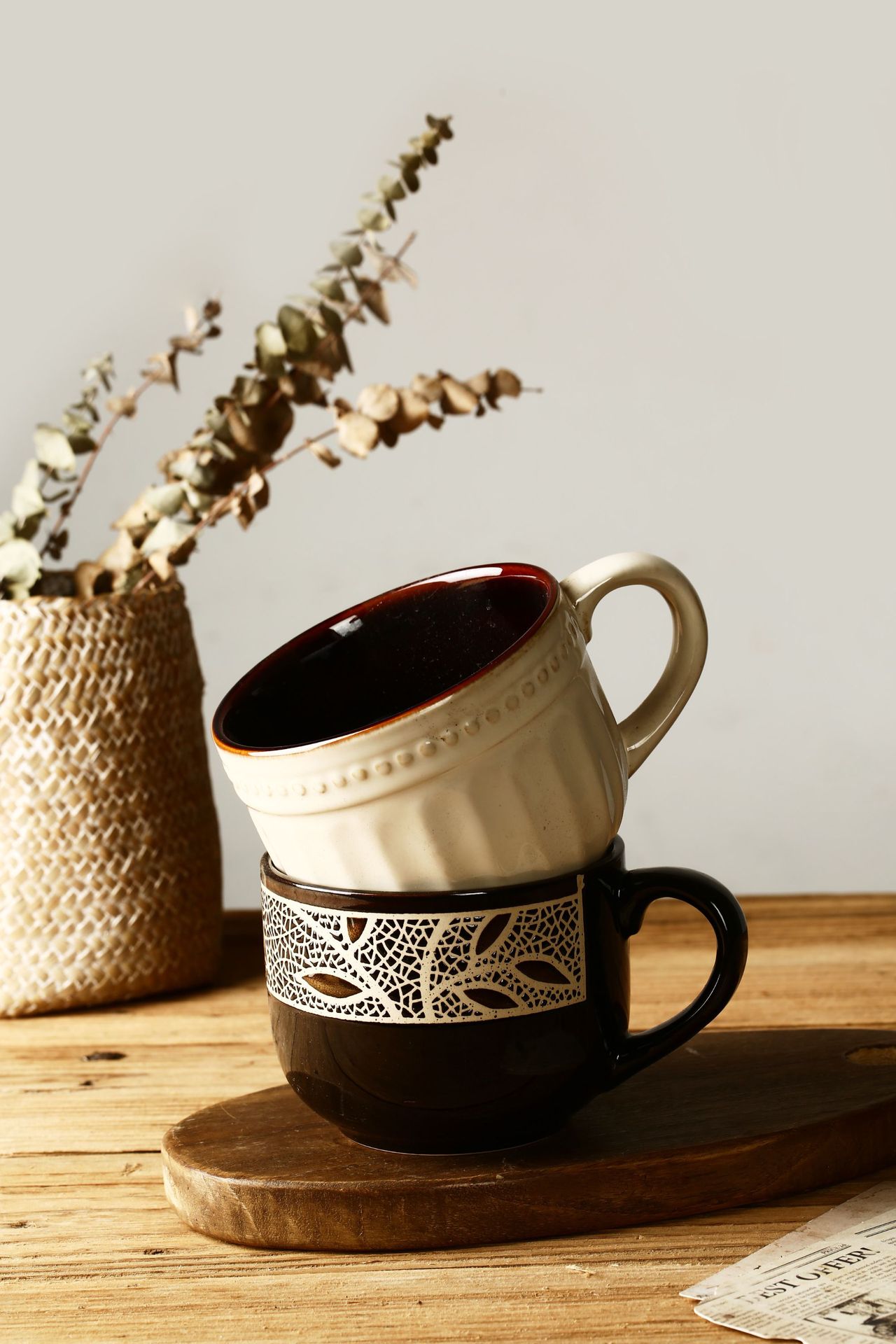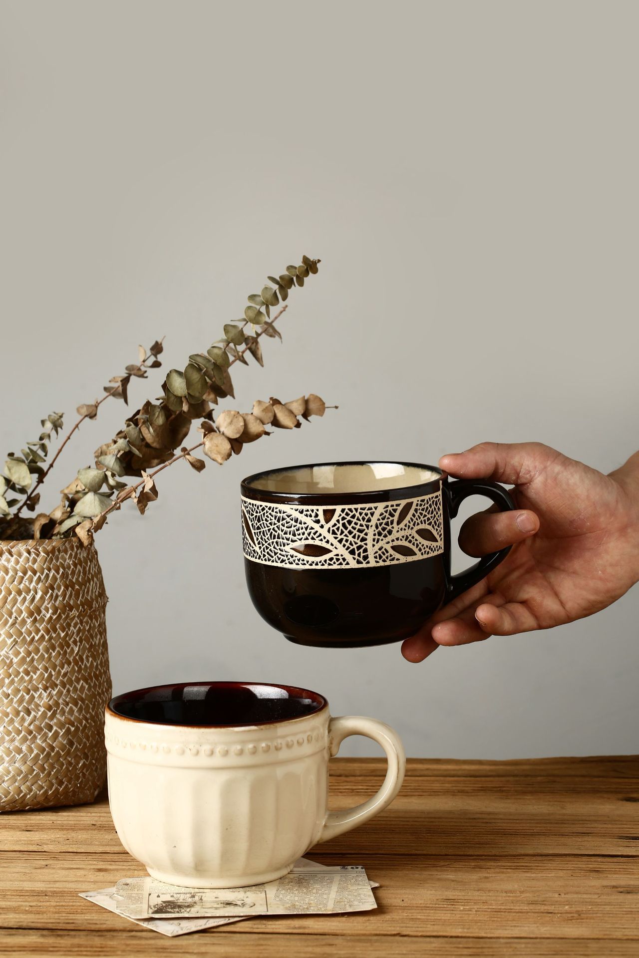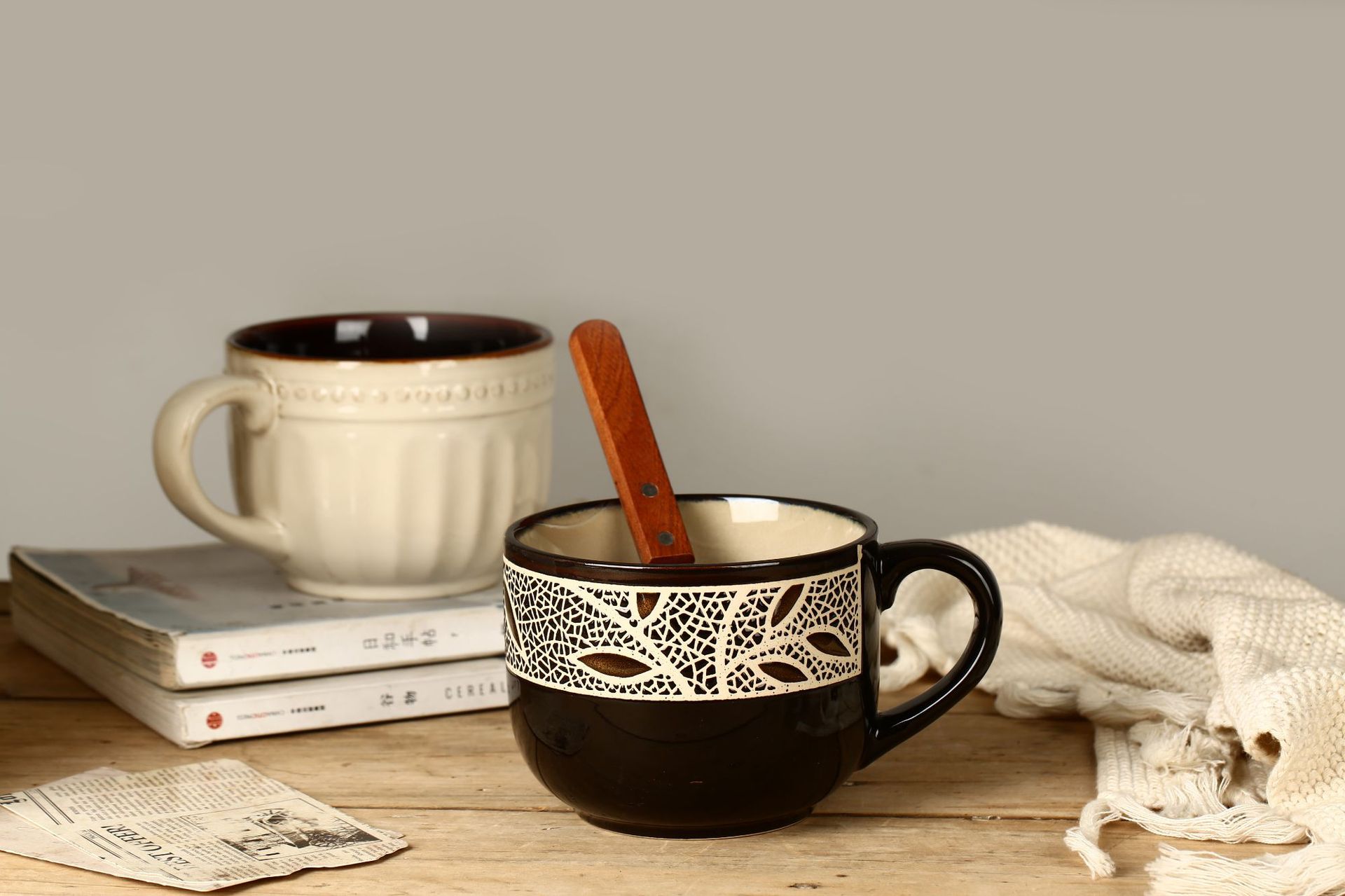 Taza de cerámica vintage de estilo europeo taza de café taza de desayuno taza de avena creativa pintada a mano taza de hoja