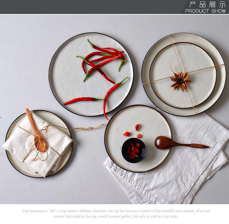 Fábrica creativa vintage placa de cerámica vajilla disco plano restaurante occidental plato de carne 8 pulgadas plato de 10 pulgadas al por mayor