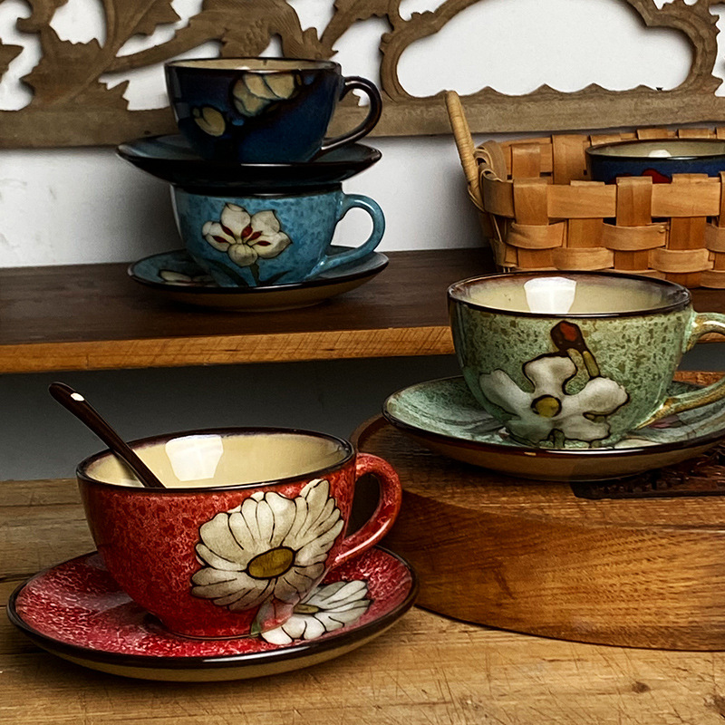 Tazas de café de cerámica plato red taza de agua roja taza de leche casera café latte pastoral viento taza de té de la tarde taza de té negro