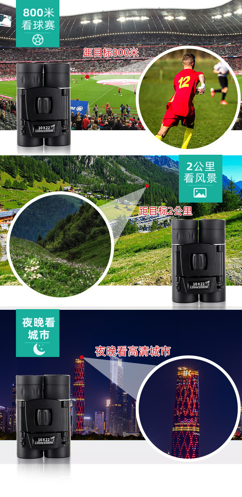 Binoculares de fábrica de alta potencia y alta definición con visión nocturna para exteriores, telescopio de bolsillo mini 40X22 y 500X25