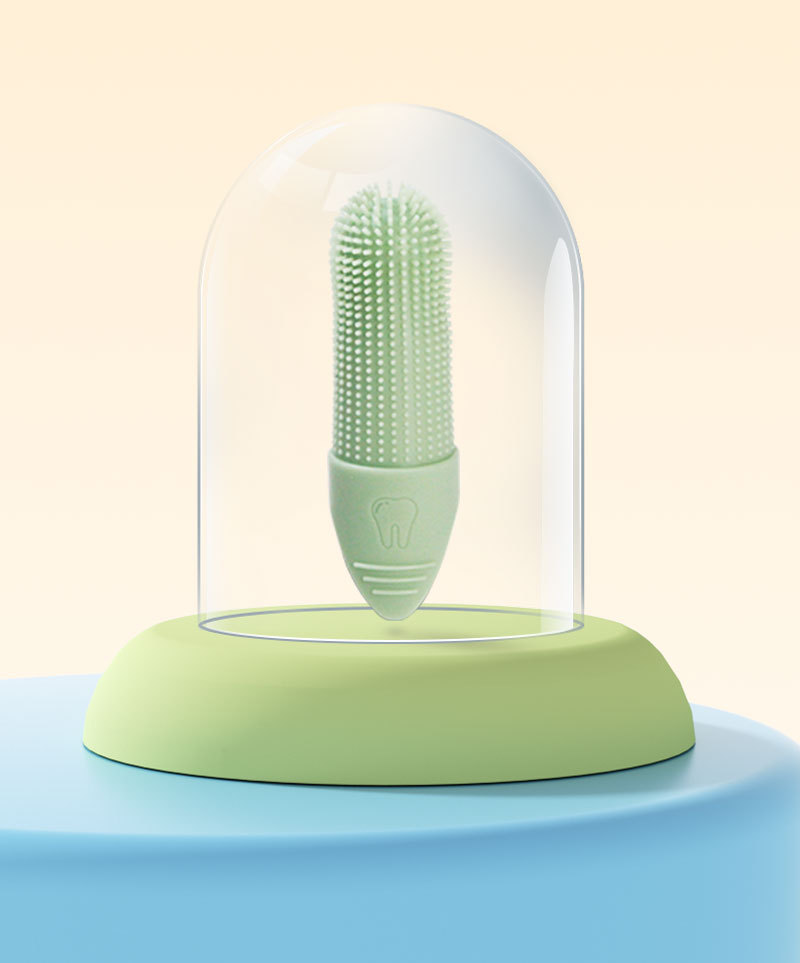 Cante de dedos de silicona cepillo de dientes-pasta de frijoles verdes
