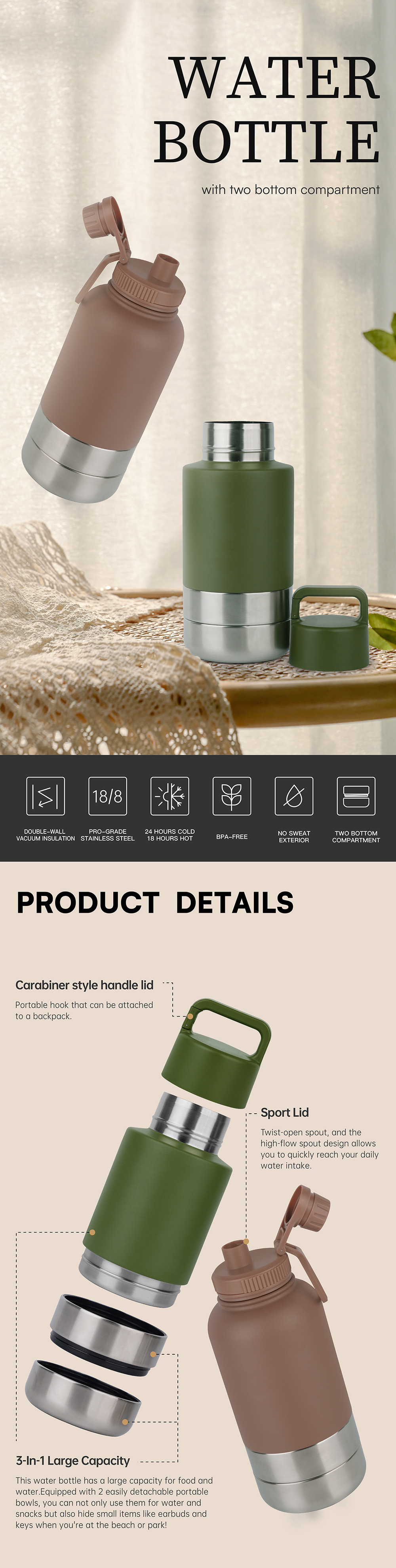 Olla espacial tres en uno de 32oz transfronteriza, manija de acero inoxidable 304 personalizada, olla espacial, taza termo para exteriores