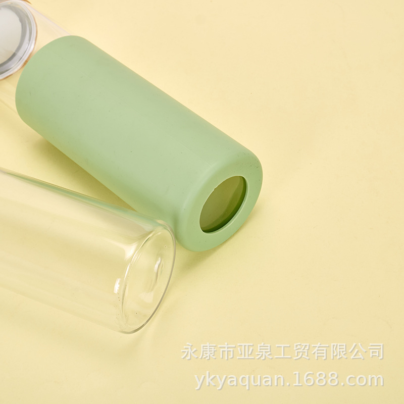 Cruz-frontera espesado vidrio borosilicato Flor de vidrio taza de té espiral de bambú cubierta de vidrio taza de agua con la cubierta de la taza de silicona