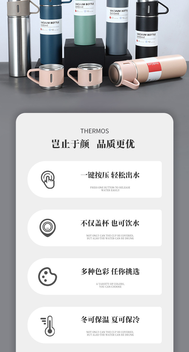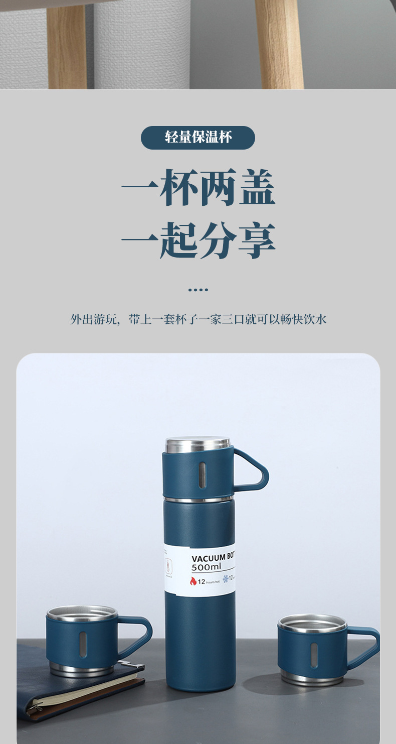 Taza de vacío de negocios de alta gama traje de tres tapas de doble uso taza de publicidad taza de agua de acero inoxidable taza de regalo puede ser logotipo personalizado