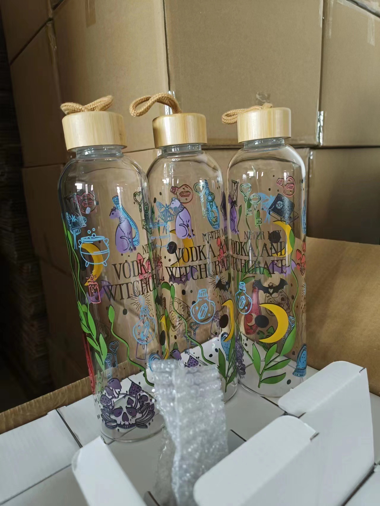 Taza de vidrio con tapa de bambú de gran capacidad transfronteriza, cuerda de elevación, cubierta de silicona portátil, taza de agua graduada, botella de agua deportiva de vidrio de alto valor