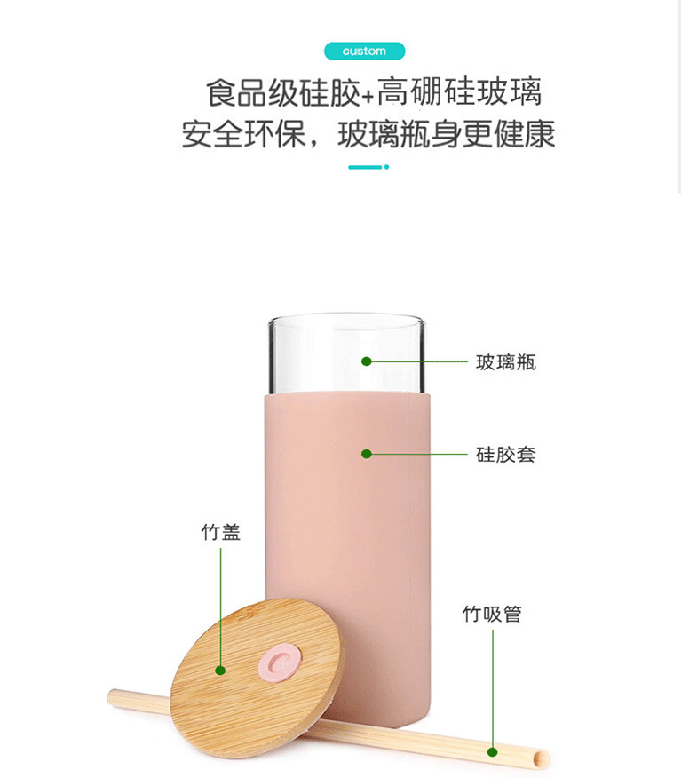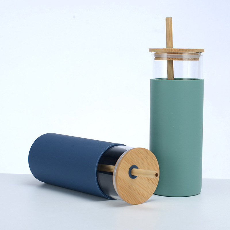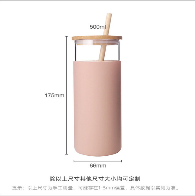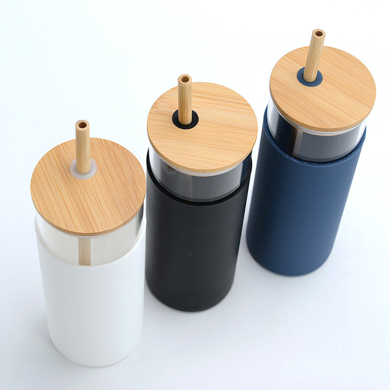 En stock Amazon transfronteriza cubierta de bambú de una sola capa de vidrio de borosilicato con cubierta de silicona paja japonesa taza portátil de impresión LO