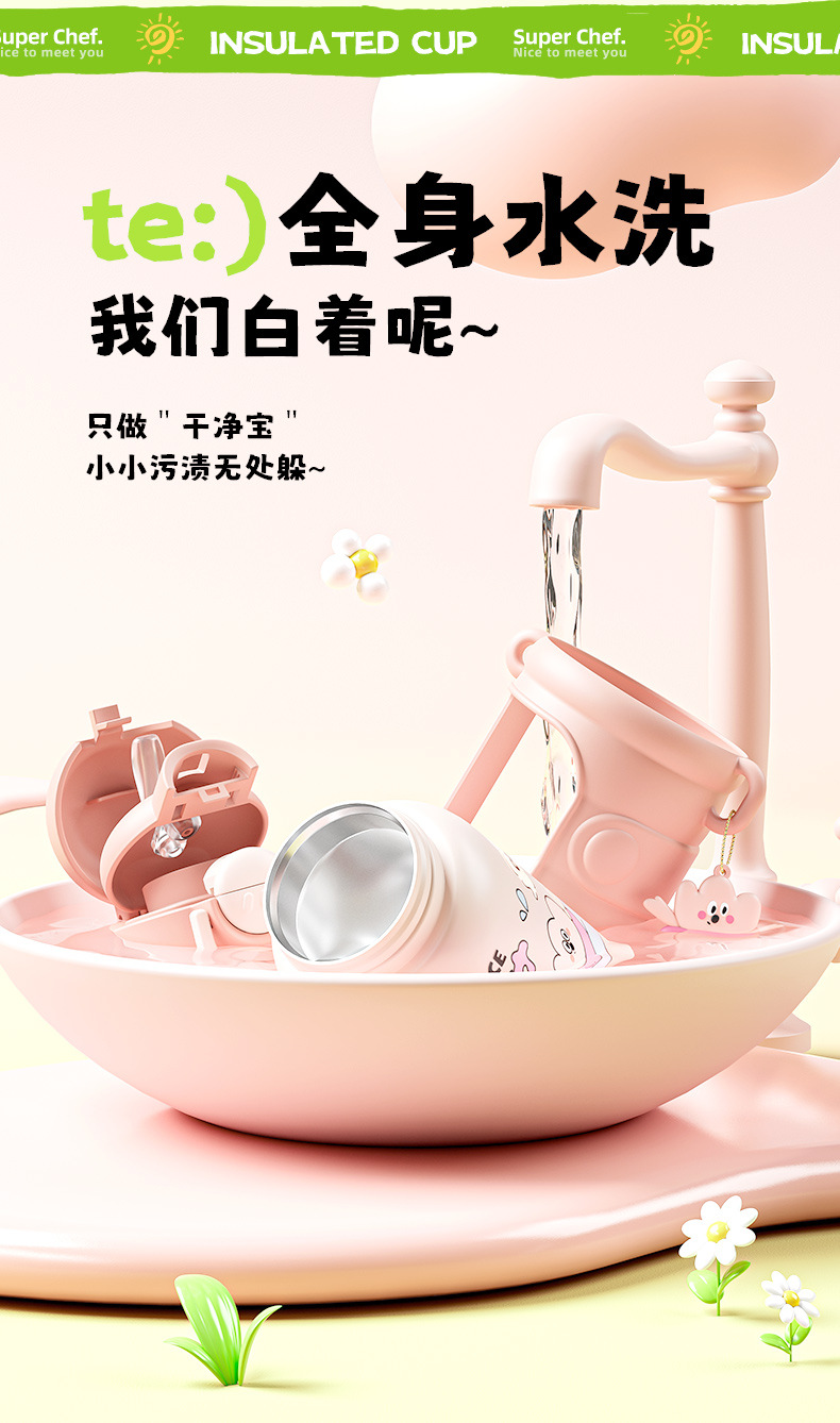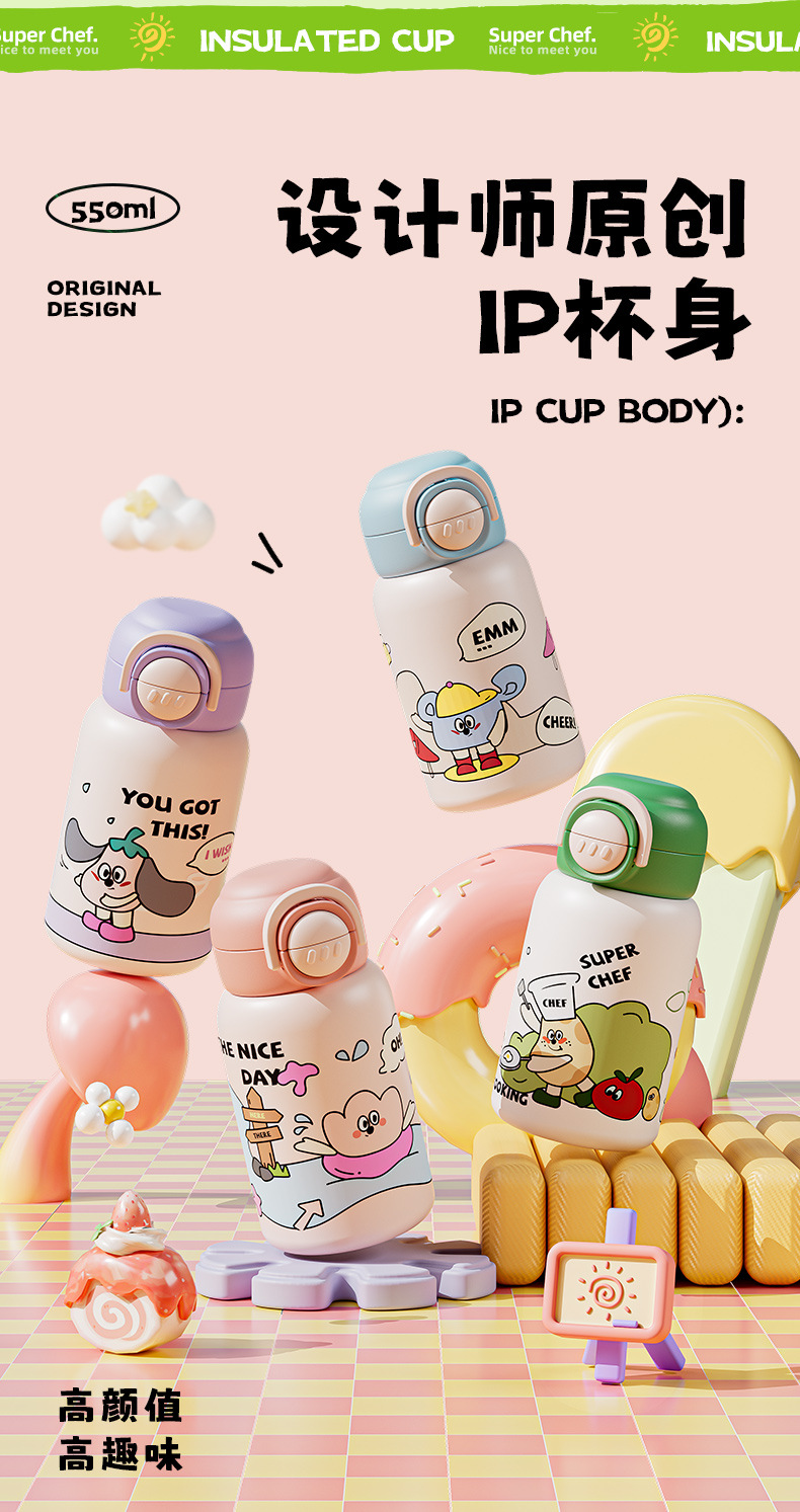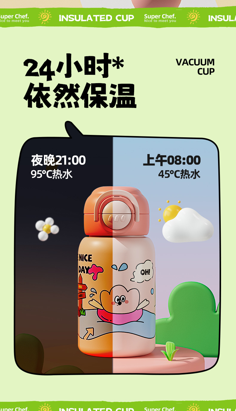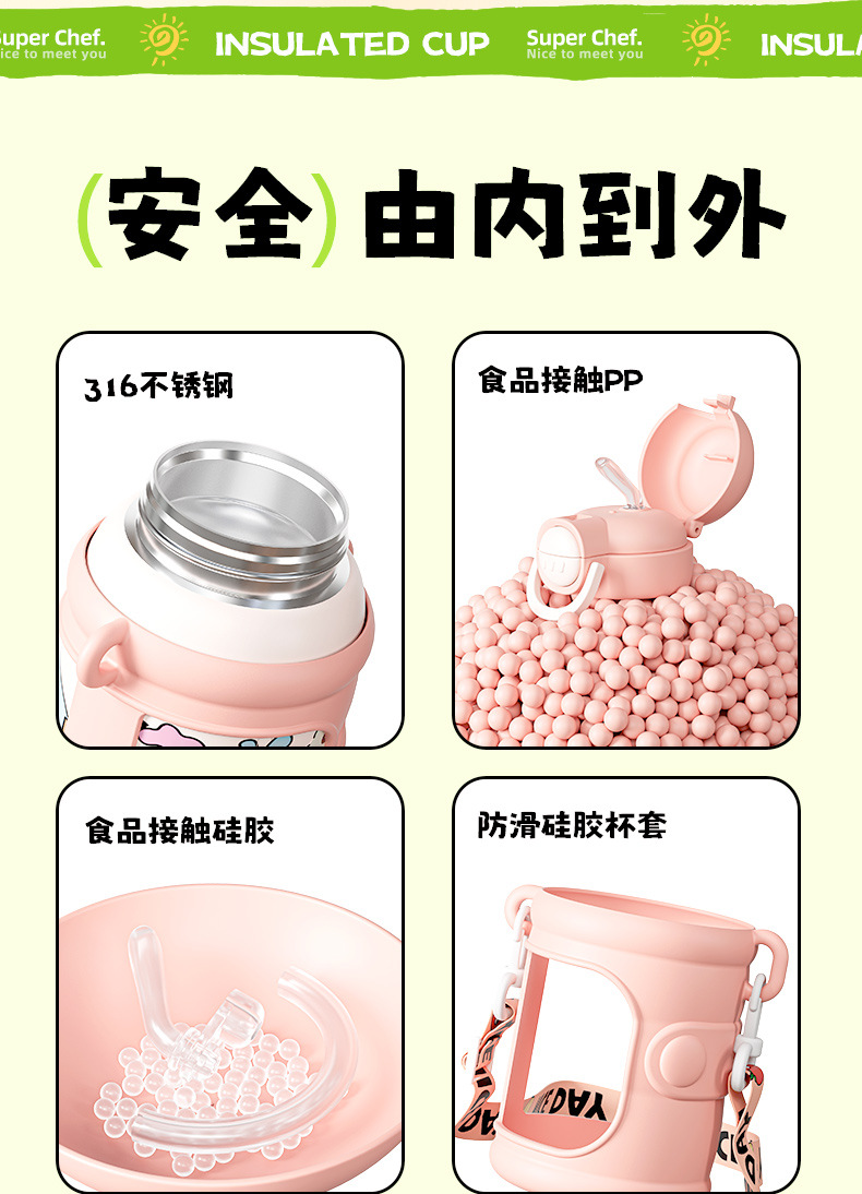 Taza de agua portátil de alto valor facial para niños encantadora bebida doble taza de paja de acero inoxidable resistente a la caída 316 taza de aislamiento de calor para niños