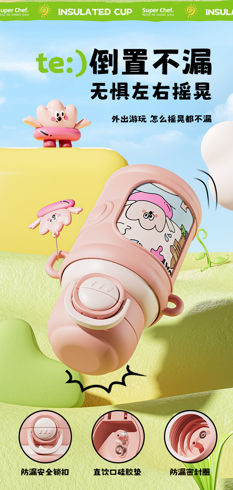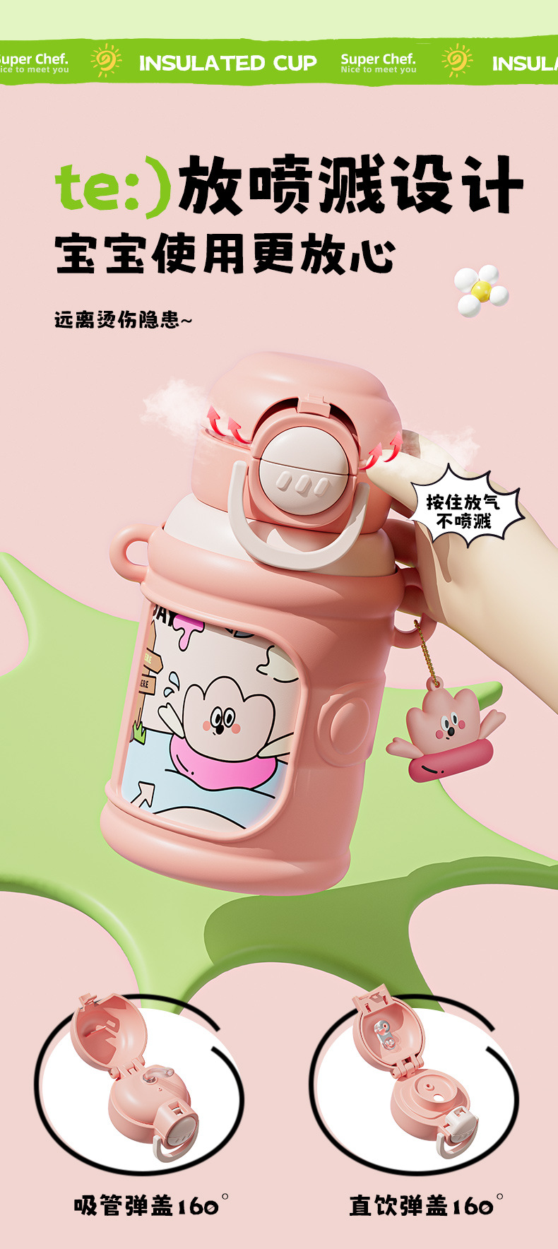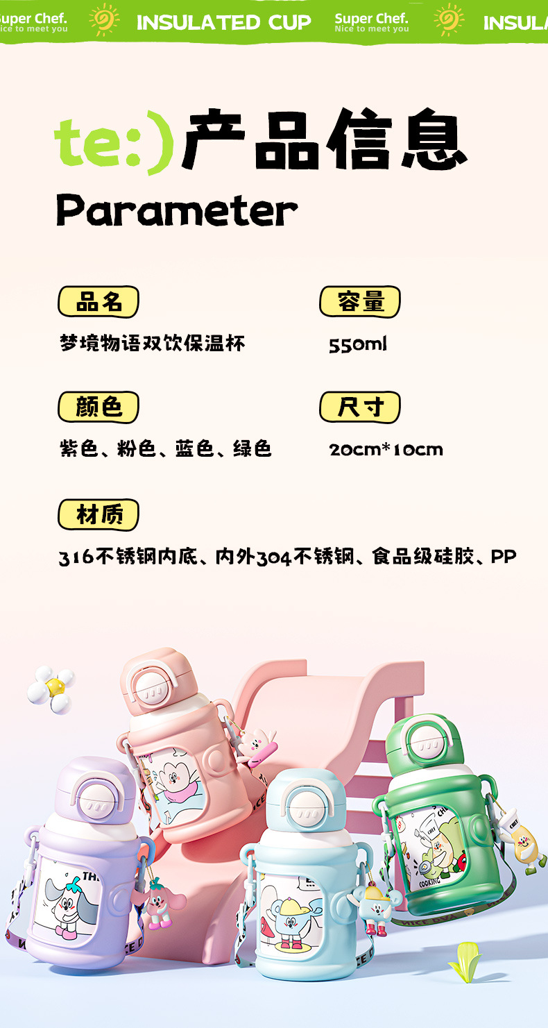 Taza de agua portátil de alto valor facial para niños encantadora bebida doble taza de paja de acero inoxidable resistente a la caída 316 taza de aislamiento de calor para niños