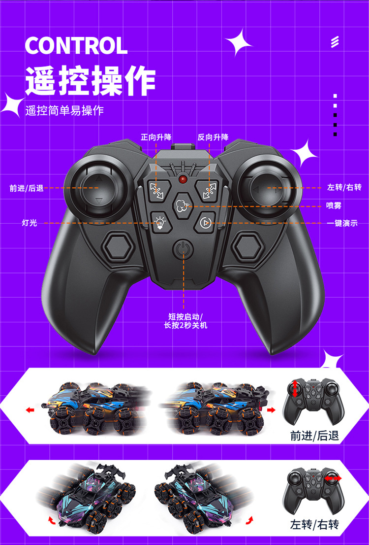 ![Coche de control remoto de deformación-verde púrpura [Caja de regalo de versión de pulverización ligera] Actualización de seis ruedas motrices + cuerpo de aleación + horizontal + conducción oblicua de 45 °-control remoto con mango](https://cbu01.alicdn.com/img/ibank/O1CN01YHkGm71sorc1J0oUn_!!1768715814-0-cib.jpg)
