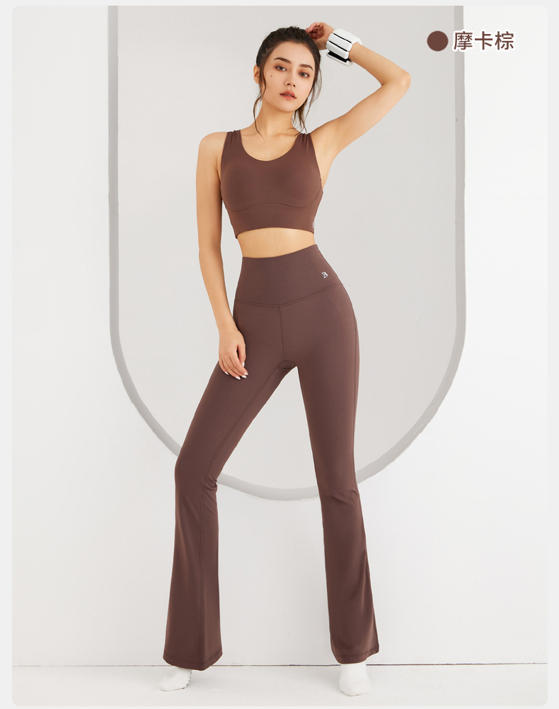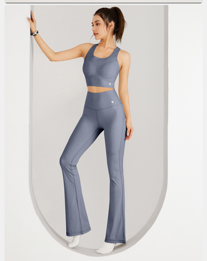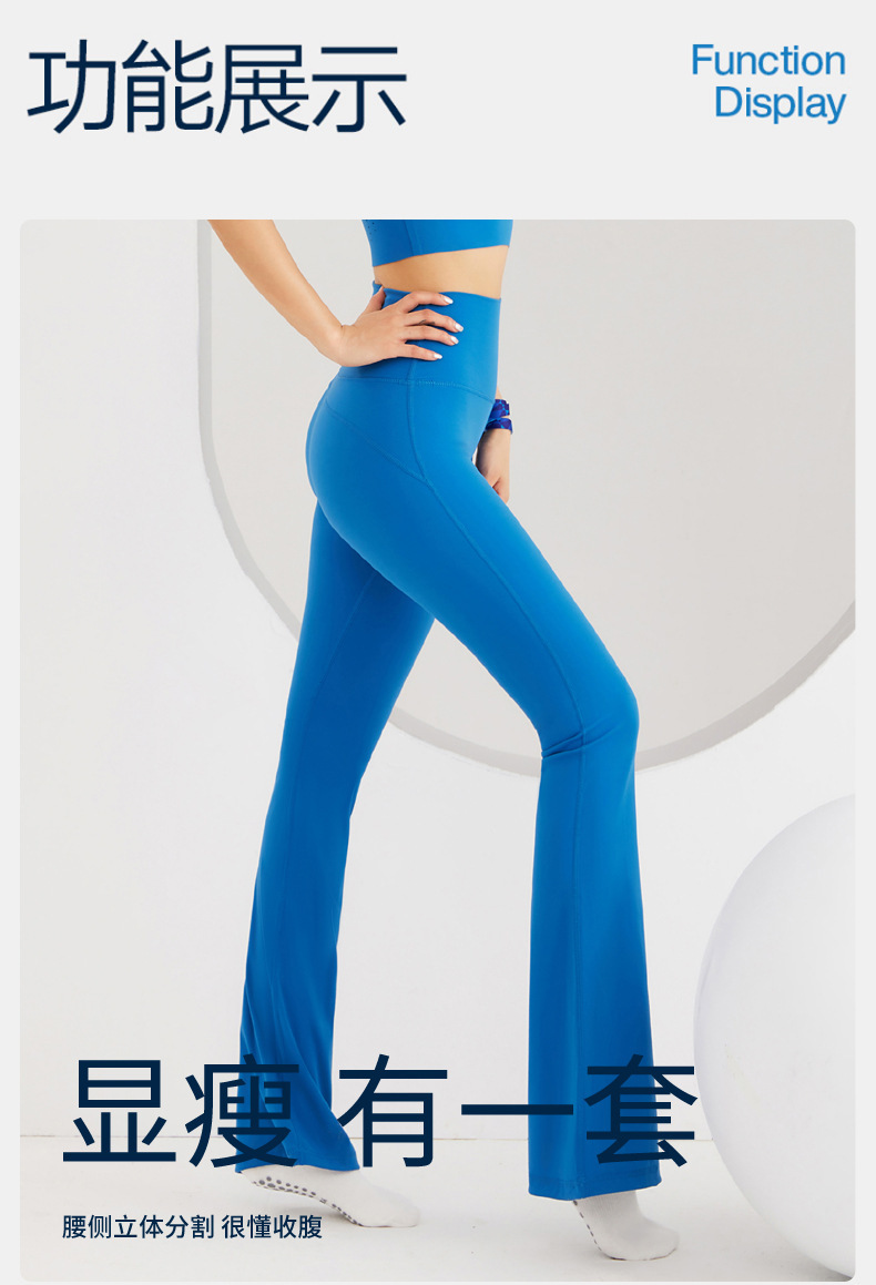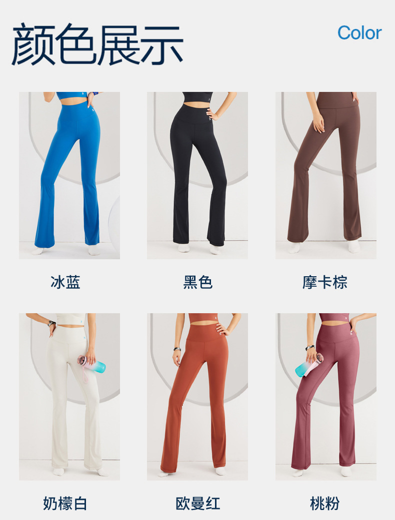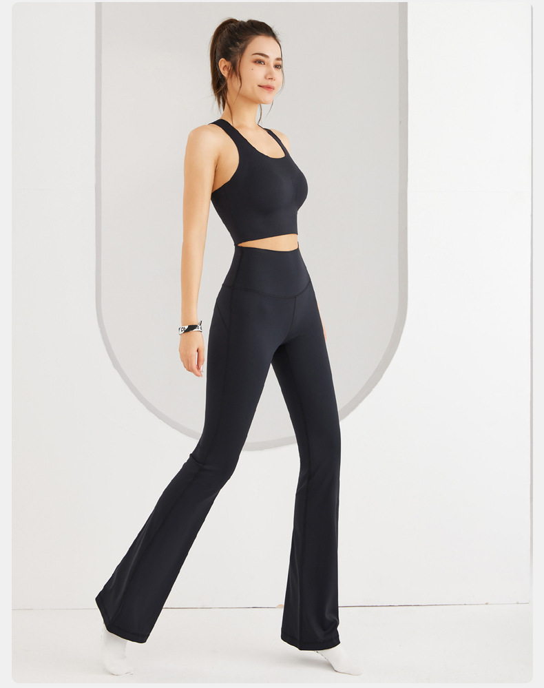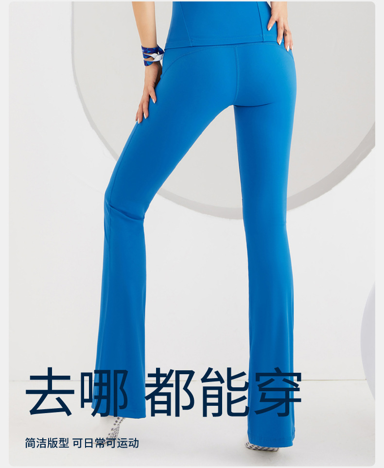 Nuevos pantalones de yoga de pierna ancha transfronteriza de cintura alta de las mujeres de levantamiento de cadera bolsillo lateral deportes desnudo casual corriendo pantalones acampanados sueltos