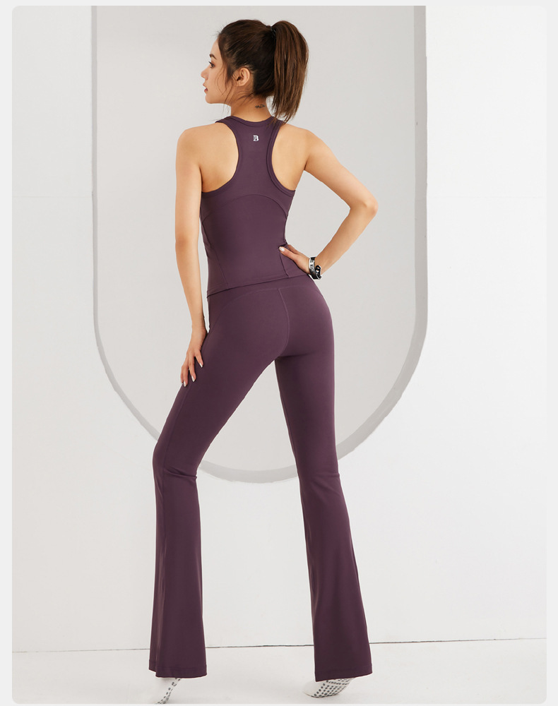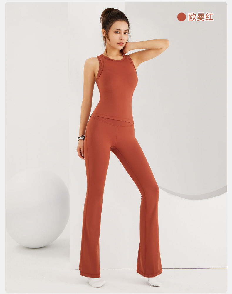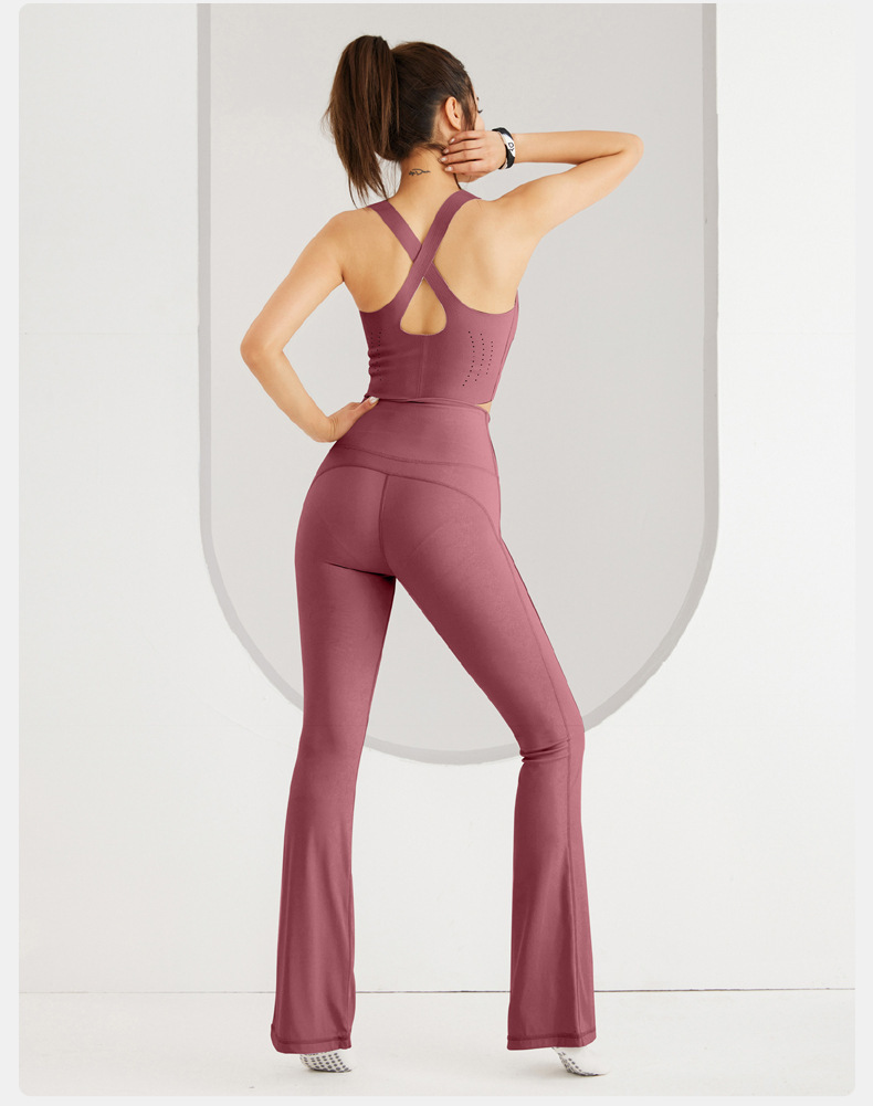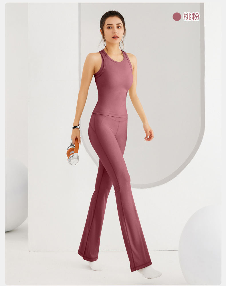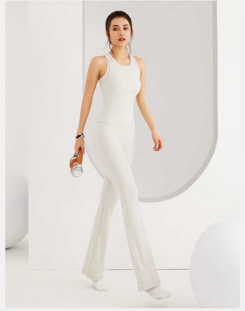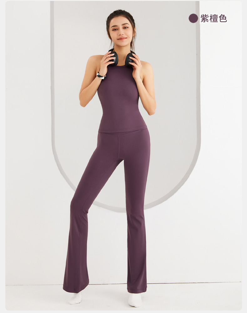 Nuevos pantalones de yoga de pierna ancha transfronteriza de cintura alta de las mujeres de levantamiento de cadera bolsillo lateral deportes desnudo casual corriendo pantalones acampanados sueltos