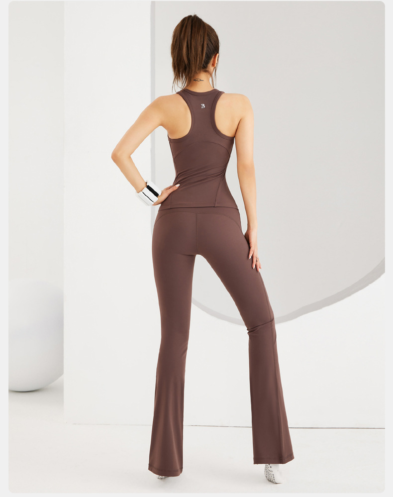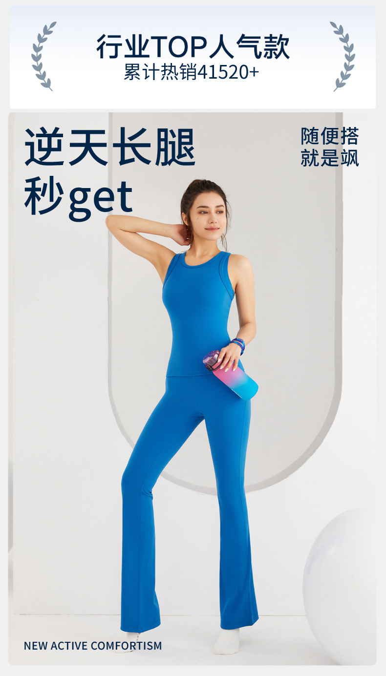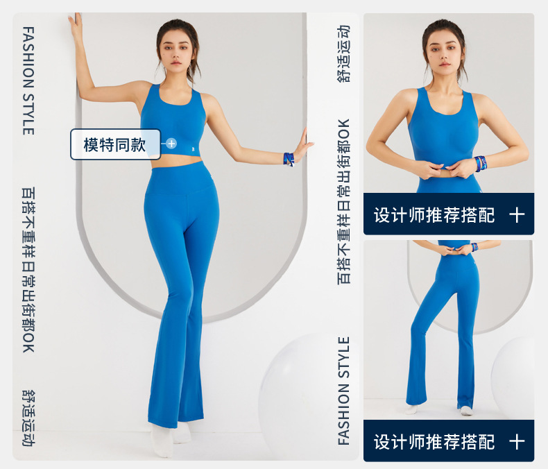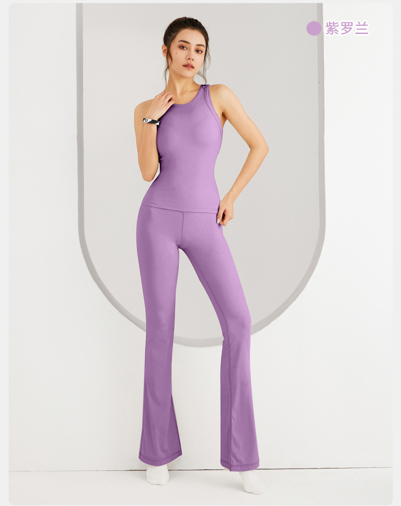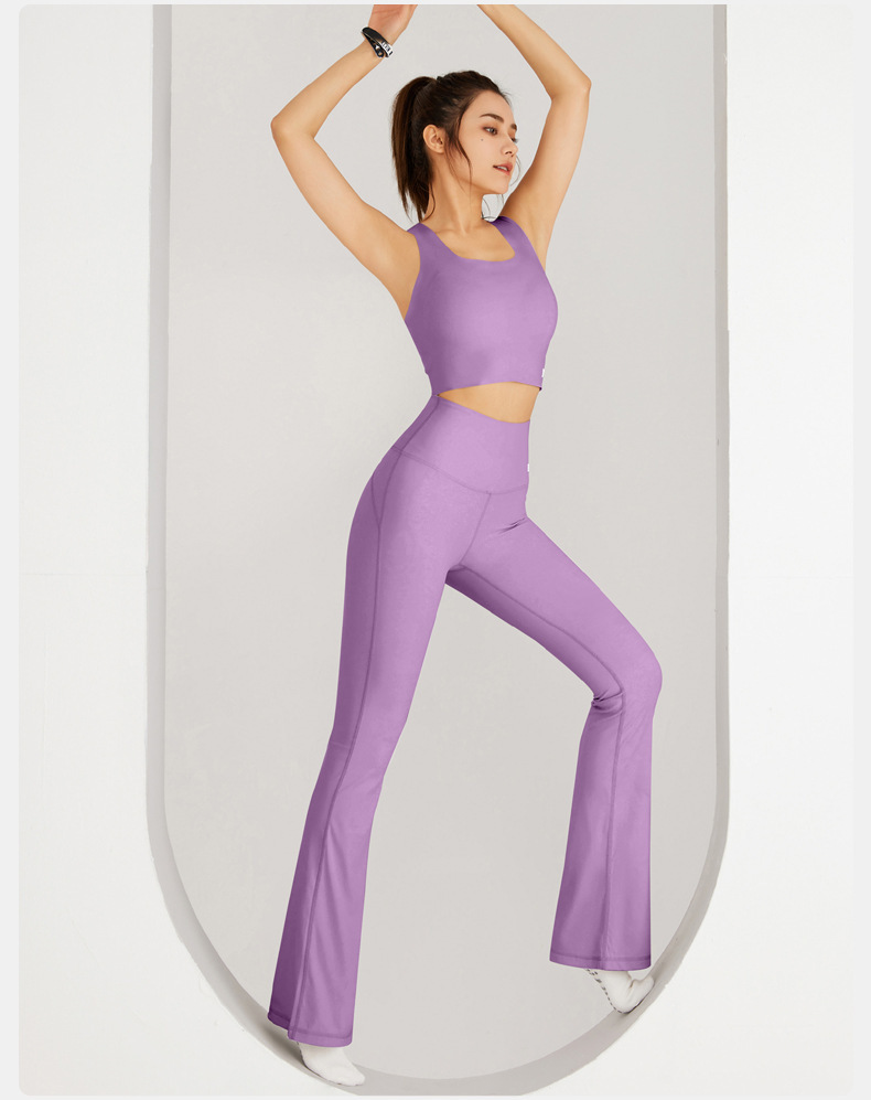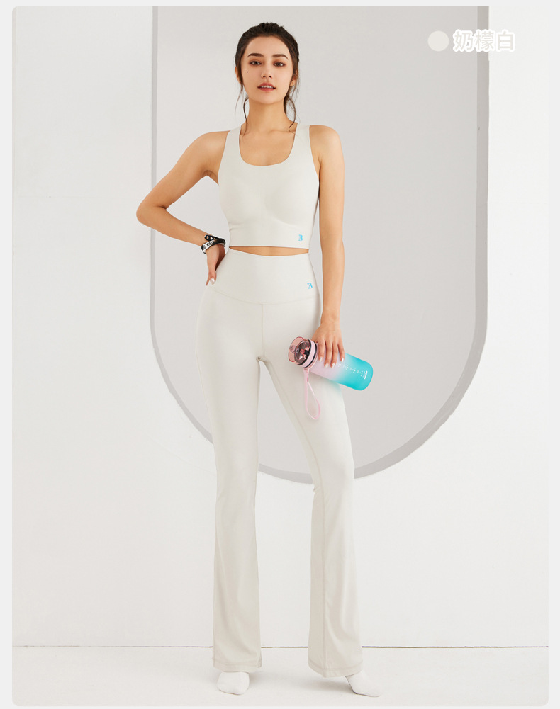 Nuevos pantalones de yoga de pierna ancha transfronteriza de cintura alta de las mujeres de levantamiento de cadera bolsillo lateral deportes desnudo casual corriendo pantalones acampanados sueltos