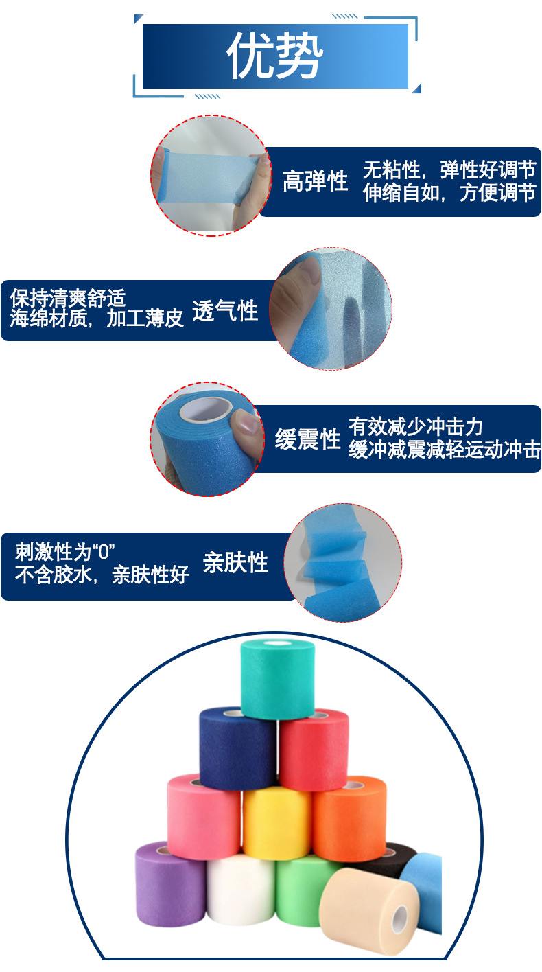 Venta caliente película absorbente de golpes película amortiguadora de bádminton película de piel base de tobillo al aire libre película de espuma esponja vendaje deportivo elástico