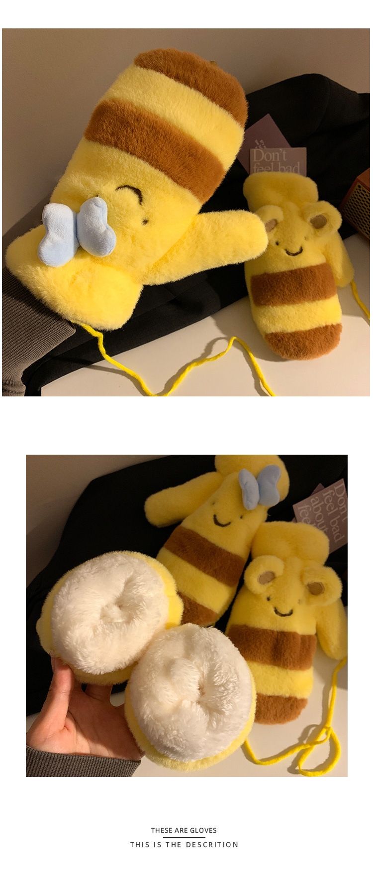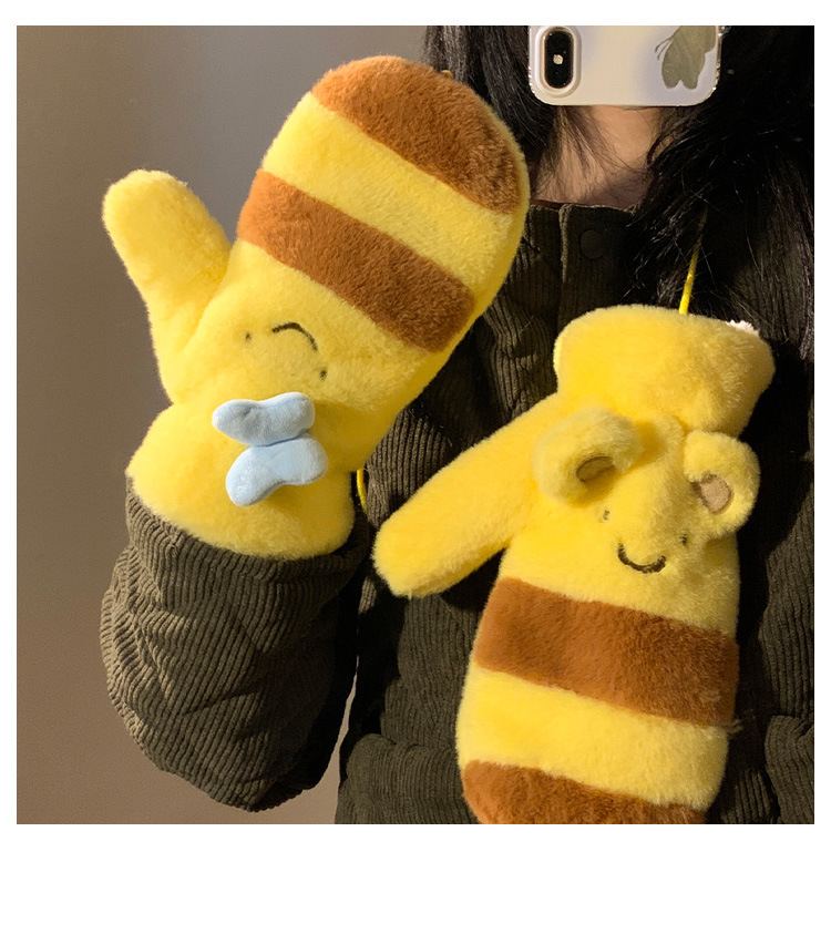 Honey bear arco guantes de peluche amarillos mujeres otoño invierno 2024 caliente versátil a prueba de viento motocicleta
