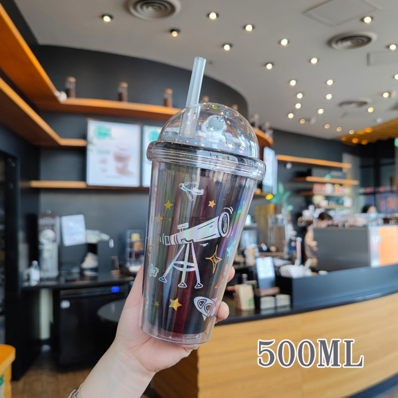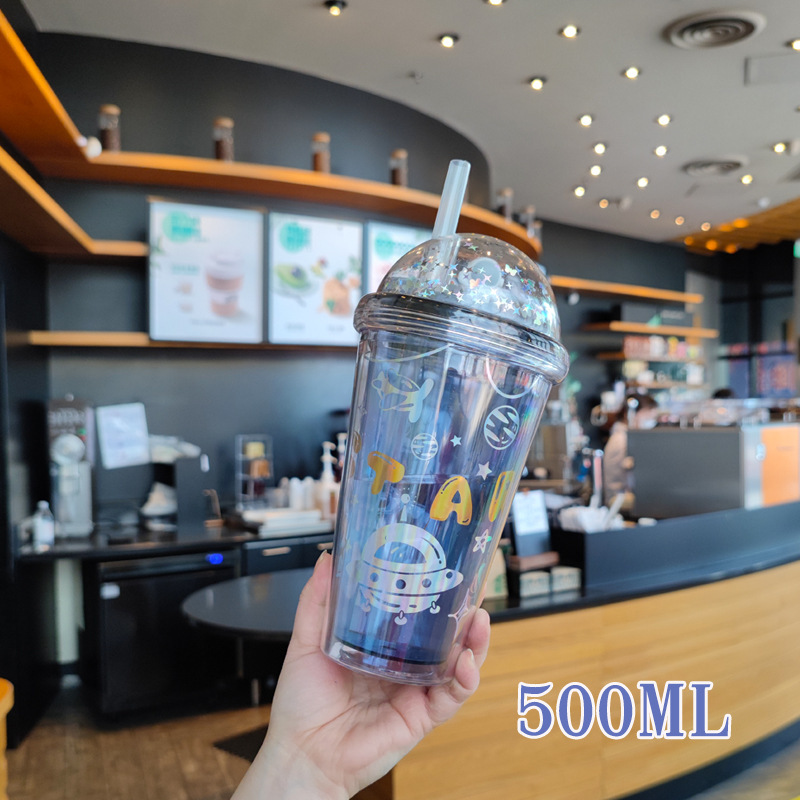 Verano nuevo material AS estudiantes tazas de té de paja con tapa de alta cara al por mayor 500ml taza de jugo de fruta fría