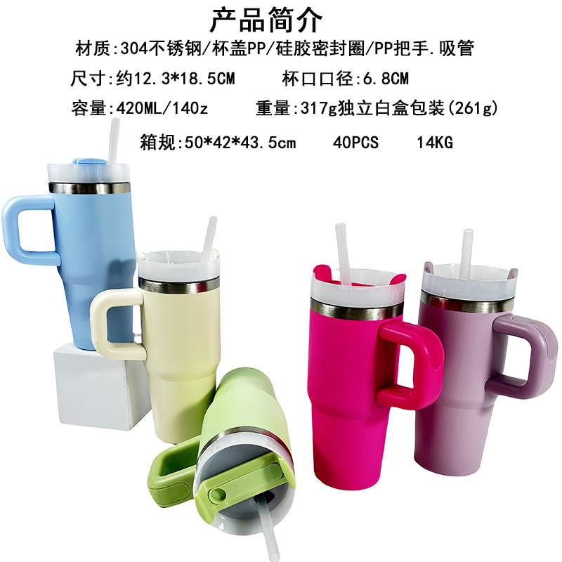 Inventario al por mayor transfronterizo 14oz portable taza de automóvil de pequeña capacidad mini taza de vacío de paja de hielo taza