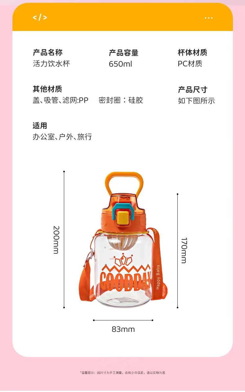 Qitong2336 verano nueva taza de plástico 650ml rebote deportes hervidor mujer fitness Internet celebridad paja hervidor