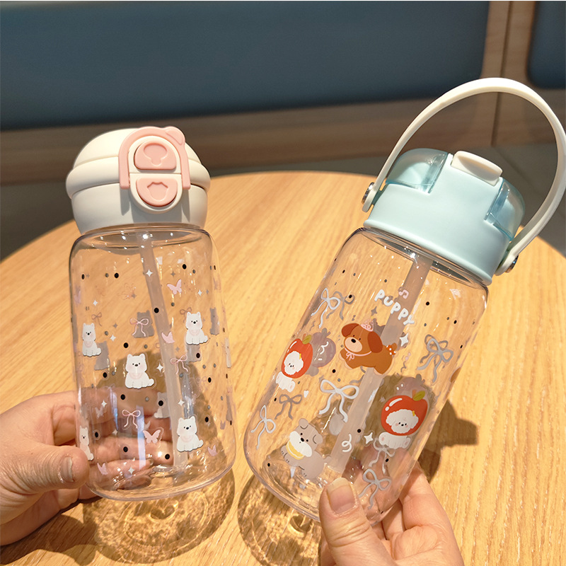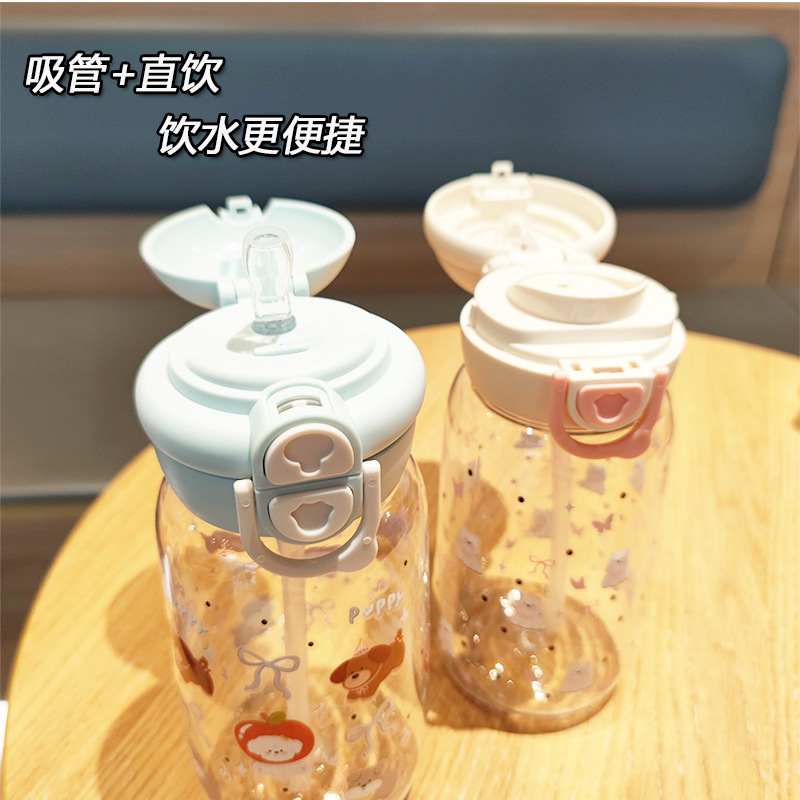 Bebidas dobles de alto valor, simples, compactas y lindas, macetas portátiles para estudiantes masculinos y femeninos, pajitas portátiles, vasos de agua de plástico