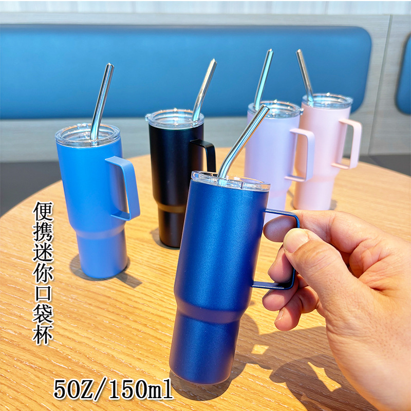 Nuevo 304 acero inoxidable 5oz mini mango taza de vino portátil taza de paja al aire libre taza de café 150ml