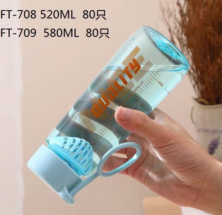 Futong 708 nueva taza de agua de plástico con colador 520ml taza de agua recta portátil personalizada con escala de fábrica al por mayor