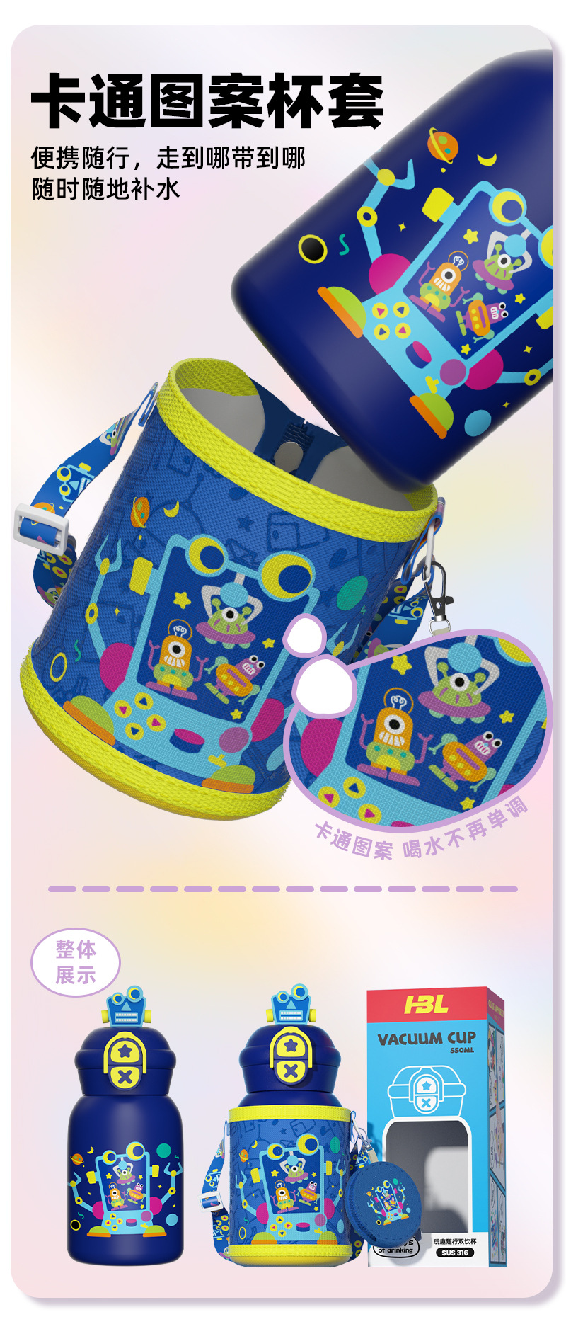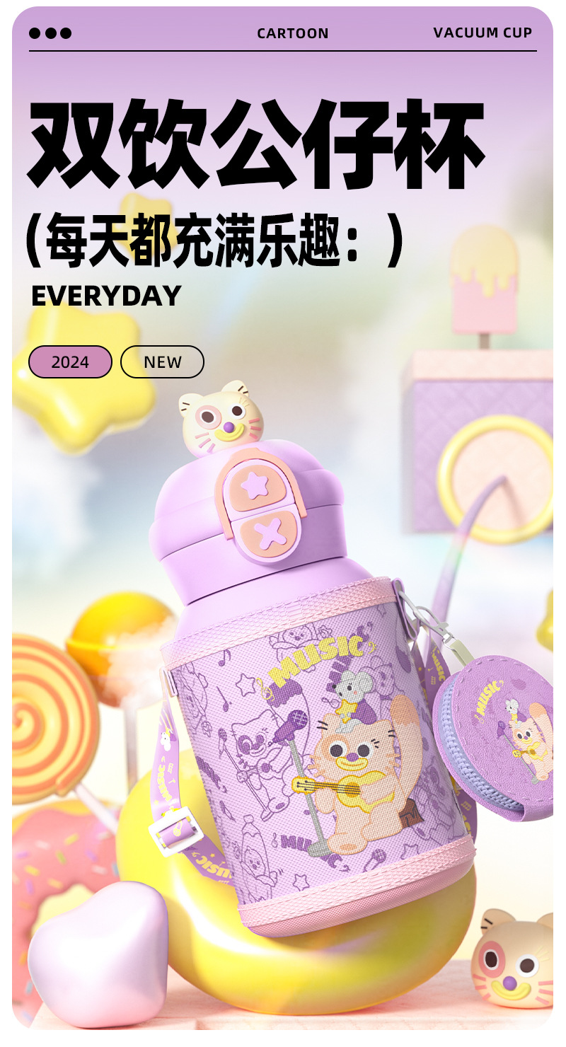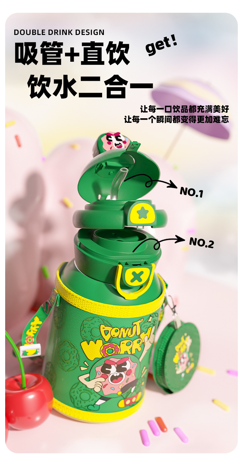 Muñeca portátil al aire libre taza de agua doble boca botella de paja de acero inoxidable vacío taza de aislamiento térmico para niños