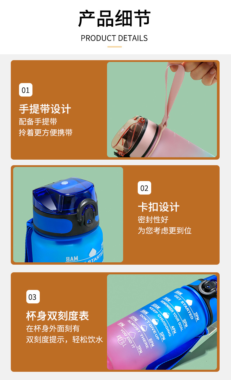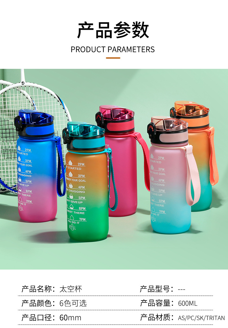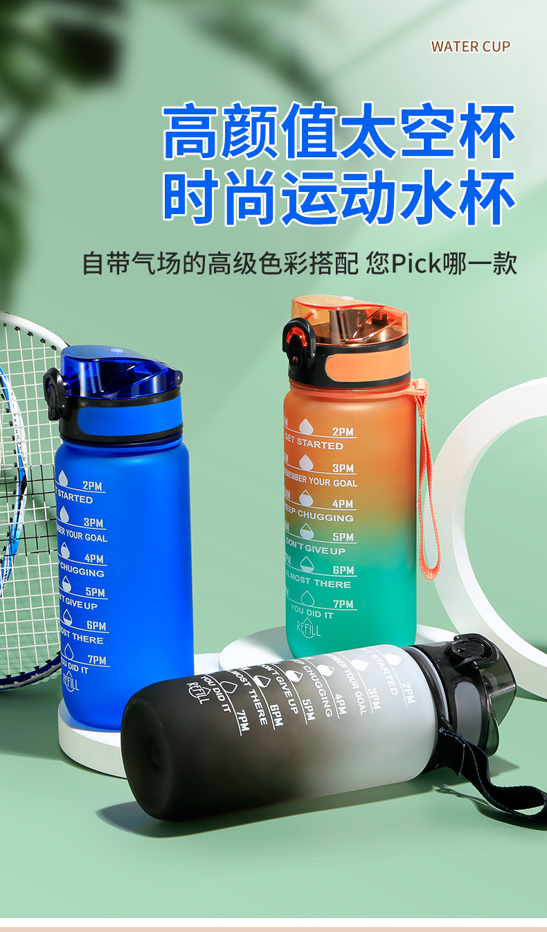 Cruz-frontera Amazon plástico agua taza de acrílico deportes hervidor estudiante portátil taza de espacio de fitness al aire libre