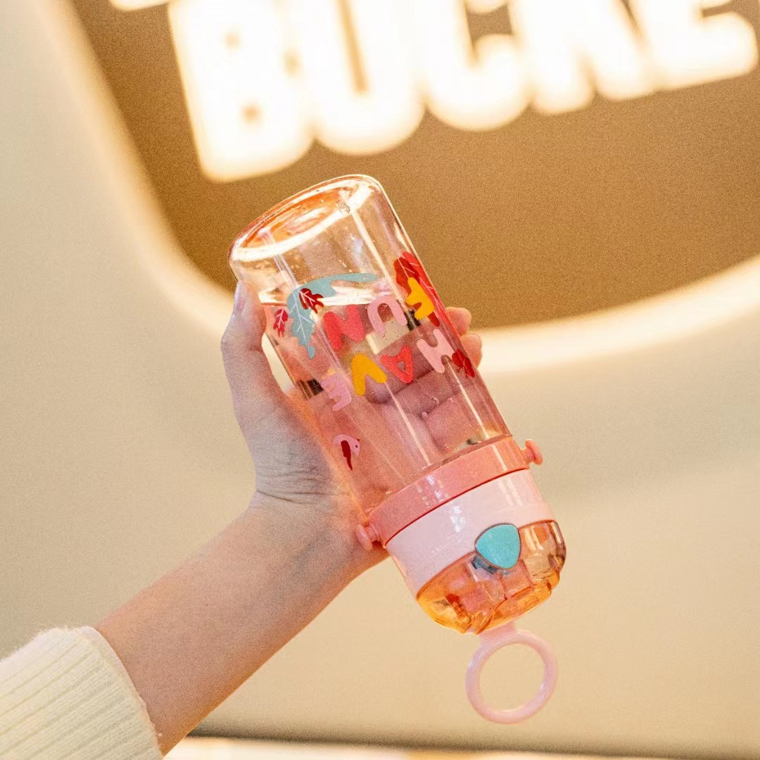 Fuente fábrica tianyi 0943 taza de paja de los niños diversión taza de agua estudiante carta de plástico taza correa doble taza de bebida