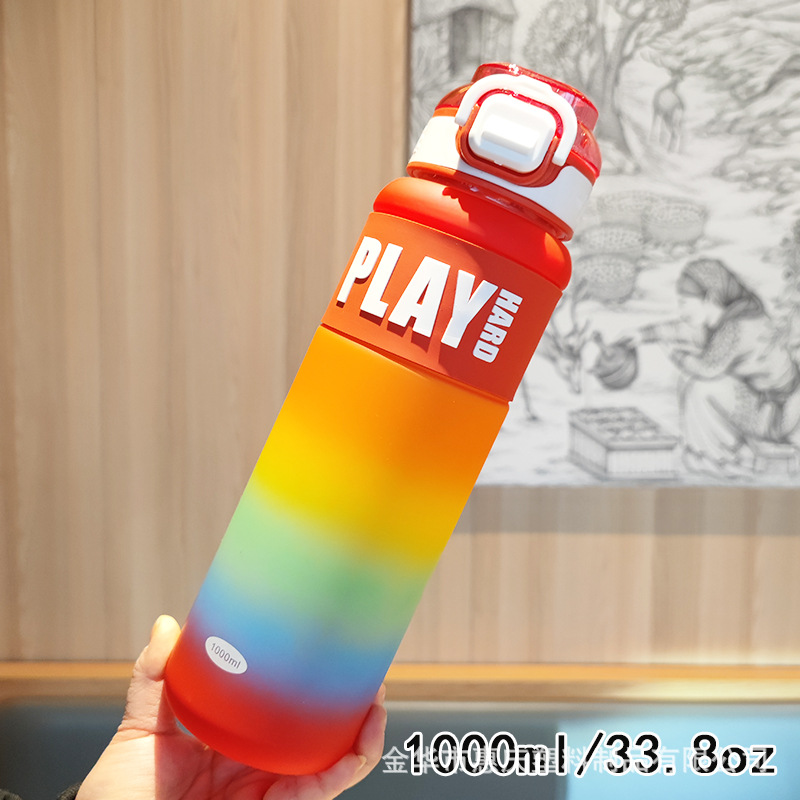 Al por mayor nueva taza de agua de plástico de paja de alto valor portátil estudiantes de tres colores gradiente botella de agua deportiva al aire libre